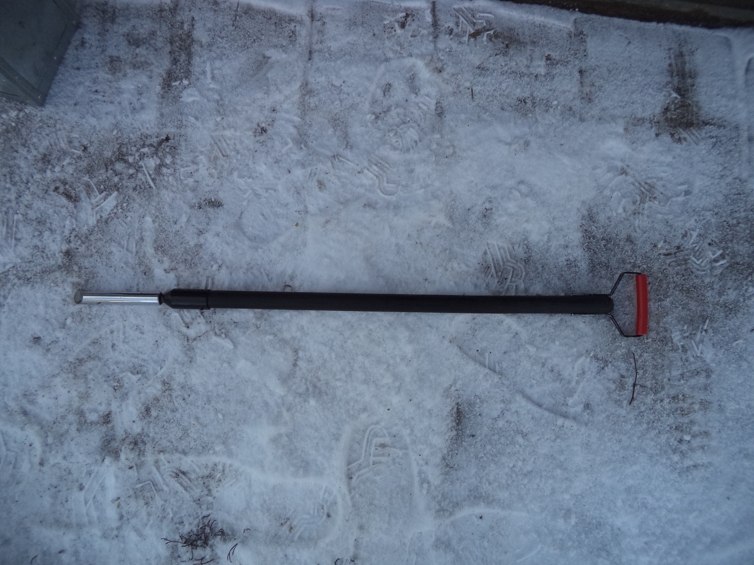 На днях из подручных средств изготовил пешню. Взял старый автомобильный амортизатор, достал шток, подобрал подходящие по размеру трубки, гайку, всё это обварил, обточил болгаркой и вот что получилось. Наконечник получился съёмный - можно снимать (откручивать) при транспортировке. На всё ушло примерно час времени.
