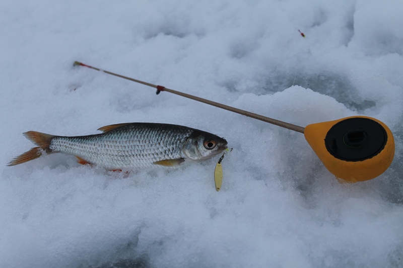 А что окунь? Окунь молчал, часа полтора безрезультатных поисков. Лунка за лункой, лишь невнятные тычки на паузе. И не мудрено, такие погодные аномалии практически никогда не приносят стабильного клева. Сам ощущаешь себя хорошенько помятым от резких температурных колебаний, что уж говорить о рыбе под водой, еще и подо льдом. Решаю сменить частые перебежки на "разработку" определенных лунок. Выбираю те "окошки", в которых были тычки, значит рыб стоит, нужно подразнить его. Делаю коротенькие подрывчики с подыгровкой на паузе. И окунь не заставляет себя ждать! Один полосатик, другой. Третий берет на падении. Так же сработал подъем блесны довольно высоко ото дна. Проработал старые лунки. Уговорил с десяток матросов. Сместился на участок с большей глубиной. В одной из лунок, на паузе между подбросами, чувствую уверенное "тук - тук". Не спрашивая "кто там?", подсекаю и подтаскиваю, уверенно сопротивляющуюся, рыбу к отверстию во льду. И тут ступор. Из лунки на меня смотрит плотва, кажется, с не меньшим удивлением чем я на нее! Ну что ж, бывает и такое, особенно в спиннинговой ловле, теперь и зимнем блеснении. Рыбалка полна сюрпризов! Именно из - за таких моментов и хочется сново и сново замирать у воды в ожидании поклевки.