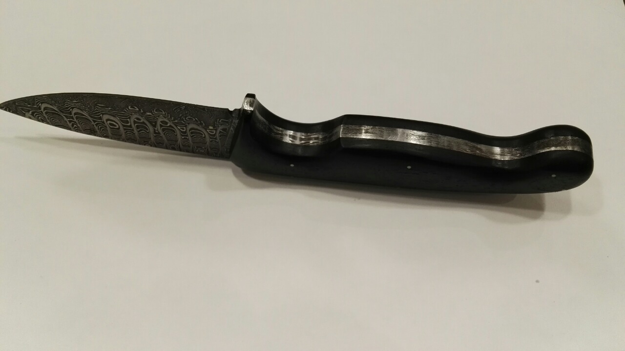 1.охотничий нож, клинок дамасская сталь, автор клинка мастер Федотов, твердость 59-61HRC общ длина 205/длина лезвия 95ммх30мм, обух 4,5мм, сведение в "ноль" рукоять: черный граб, нержавеющая сталь, финиш тунговое масло, карнаубский воск, ножны: кожа черпак растительного дубления, вощеная нить, финиш карнаубский воск