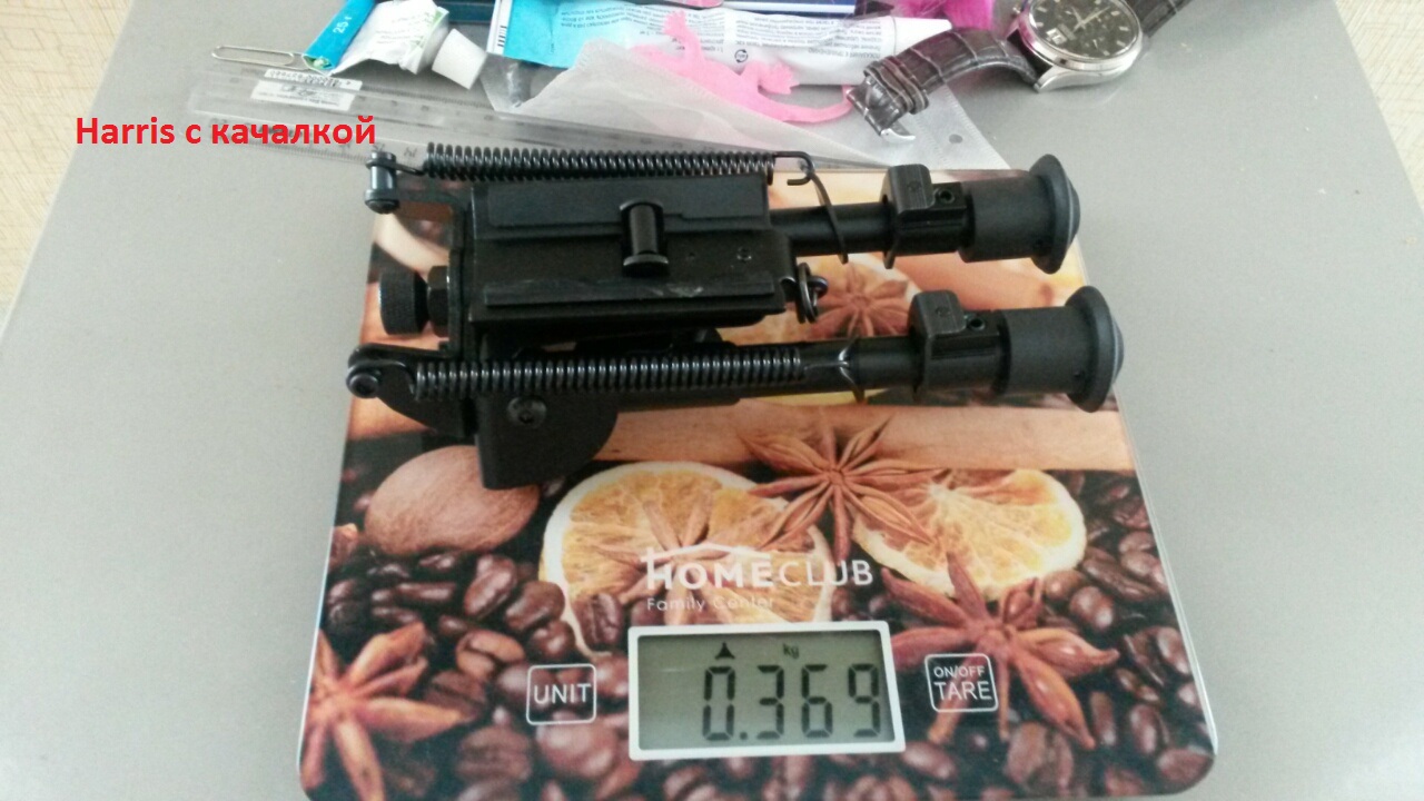 Какой вес у позиции № 1.Сошки Atlas Bipod и № 2.1. Сошки 6-9 Harris ( Копия) с качалкой под антабку + подлок?