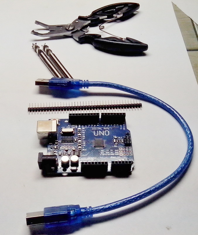 Внизу Arduino UNO R3 + USB КАБЕЛЬ