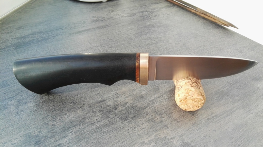 рукоять: 130мм, черный граб,бронза,вулканическая фибра,стабилизированный сувель клёна, декоративный пин в торце, тунговое масло