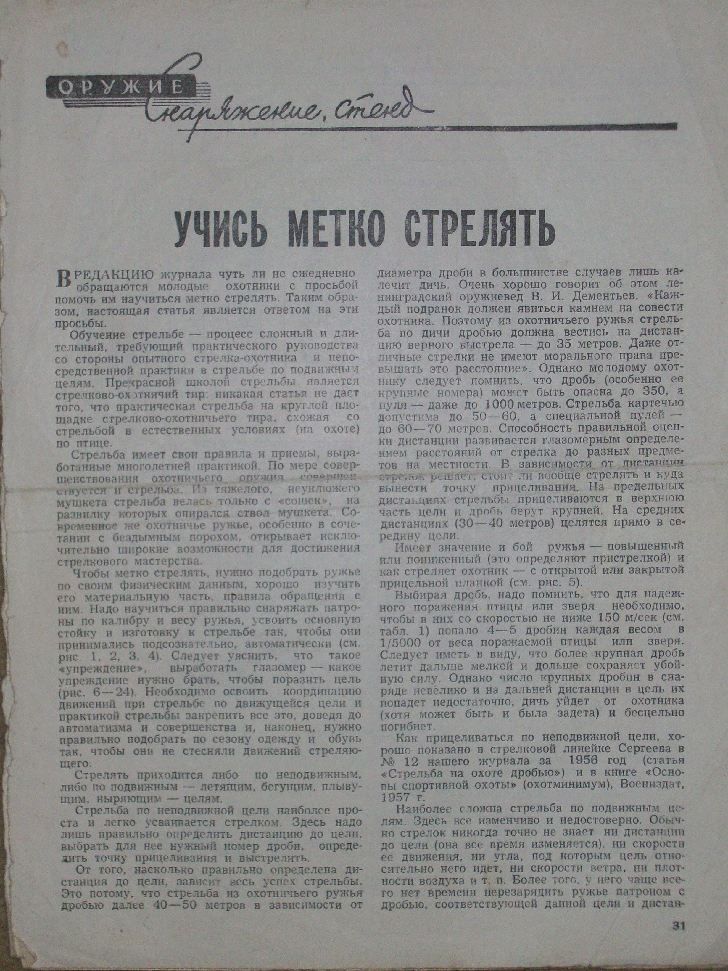 Охотничье оружие. Прицельные приспособления, снаряжение патронов, патроны. Уход за оружием. Достоинства и недостатки обмундирования. Одежда, маскировочные костюмы, чучела, охотничьи манки, и прочее...