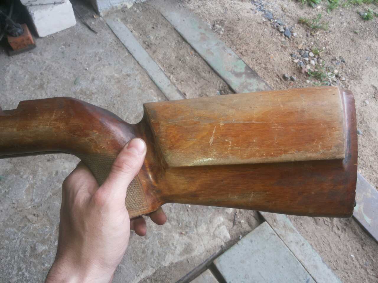 Дима,тут ещё вариант! Кроме этой может сгодится на хотелку ложа от ТОЗовской мелкашки. Вот такие-тёмные рядом с Уралом? Ложа слева от Зуля уже ни при чём! Я её уже на другую красавицу забацал На Ураловской в дополнение есть шина с антабкой и спусковая скоба,на маленьких тоже есть скобы,в общем с барином всё решите-просто показать вариант :