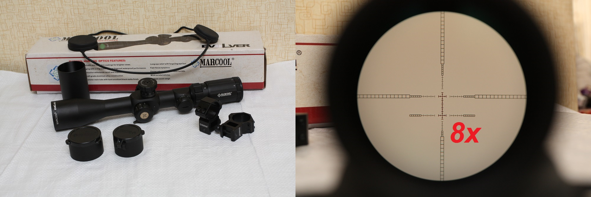 Легкий и компактный.Кристально четкая картинка, Сетка MAR-028 гравированная на линзе, многослойное оптическое просветление Объектив 44мм, Увеличение крат: 4.5-18х, Труба 30мм цельная, Сетка гравированная на линзе.