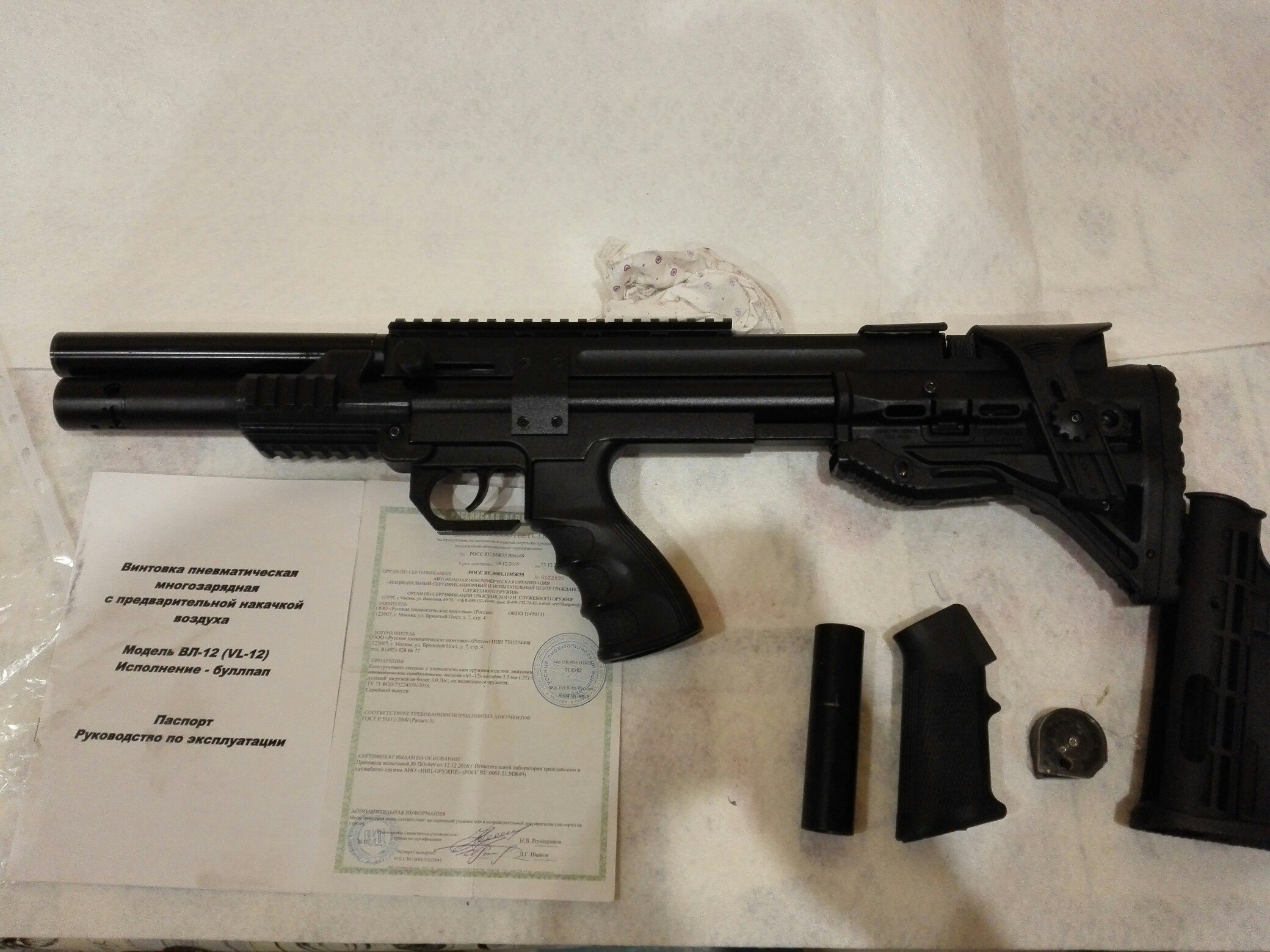 Комплект - vl12 ствол ЛВ 300мм, удленнен резик, установлен более длинный модер, рукоять и приклад от М серии (не Китай), затыльник съёмный, цевье и ручка взвода 3D, паспорт, сертификат, все родные потроха в комплекте, (коробку если найду тоже отдам, но наврятли))), 1 барабанчик, полочка для одиночной стрельбы.