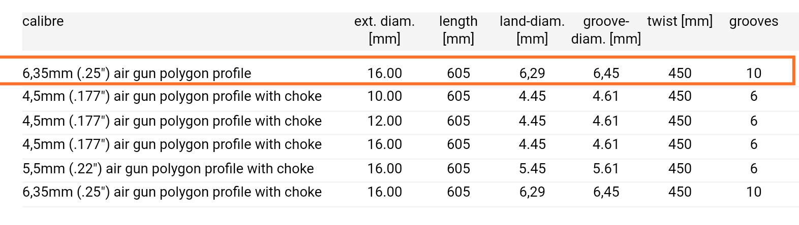 Параметры: длина: 605 мм, диаметр:16 мм, нарезы полигональные без чока