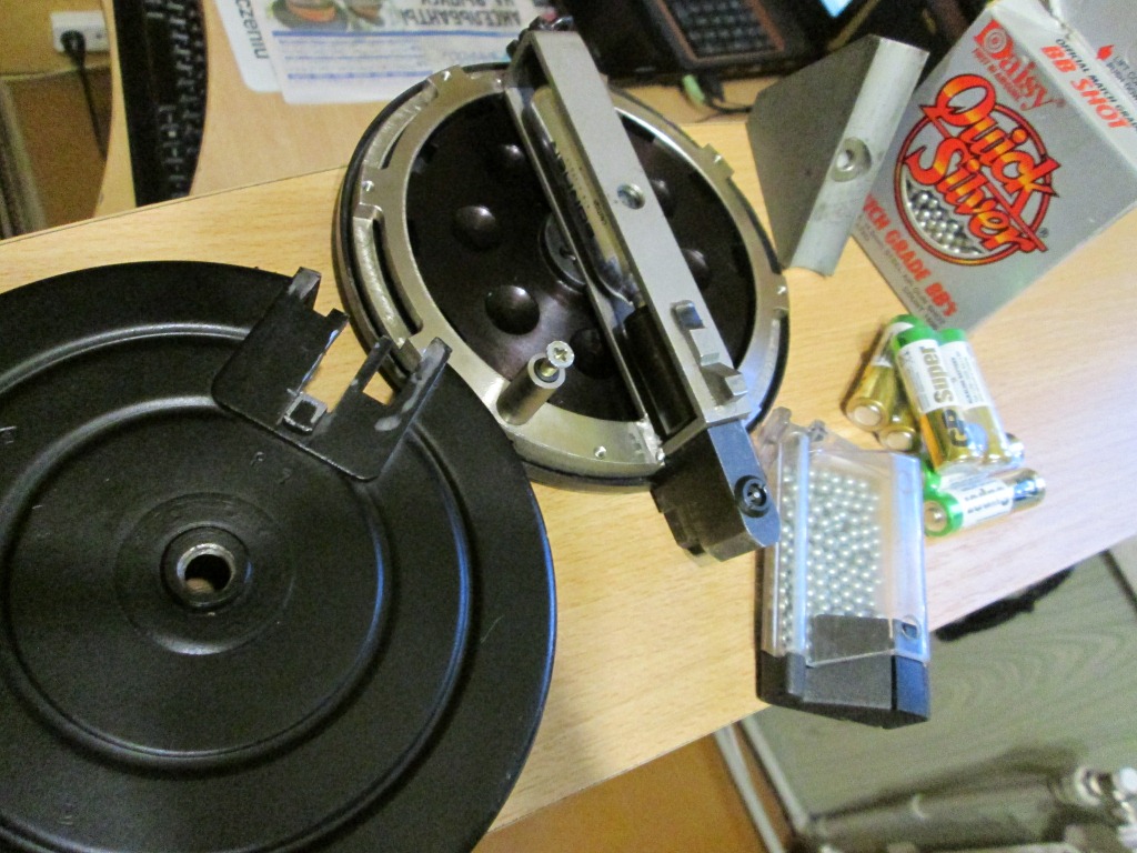 В продаже ижевский вариант пневматики на базе легендарного ППШ. Исходник 1942 года выпуска. Электропривод позволяет лупить очередями. Одиночный режим, разумеется, тоже есть. Комплект - Сам аппарат (почти без настрела, больше висел для понтов в шкафу), оригинальный ремень (послевоенный), подсумок для диска (послевойна), приспособление для заряжания, паспорт и немного шариков.