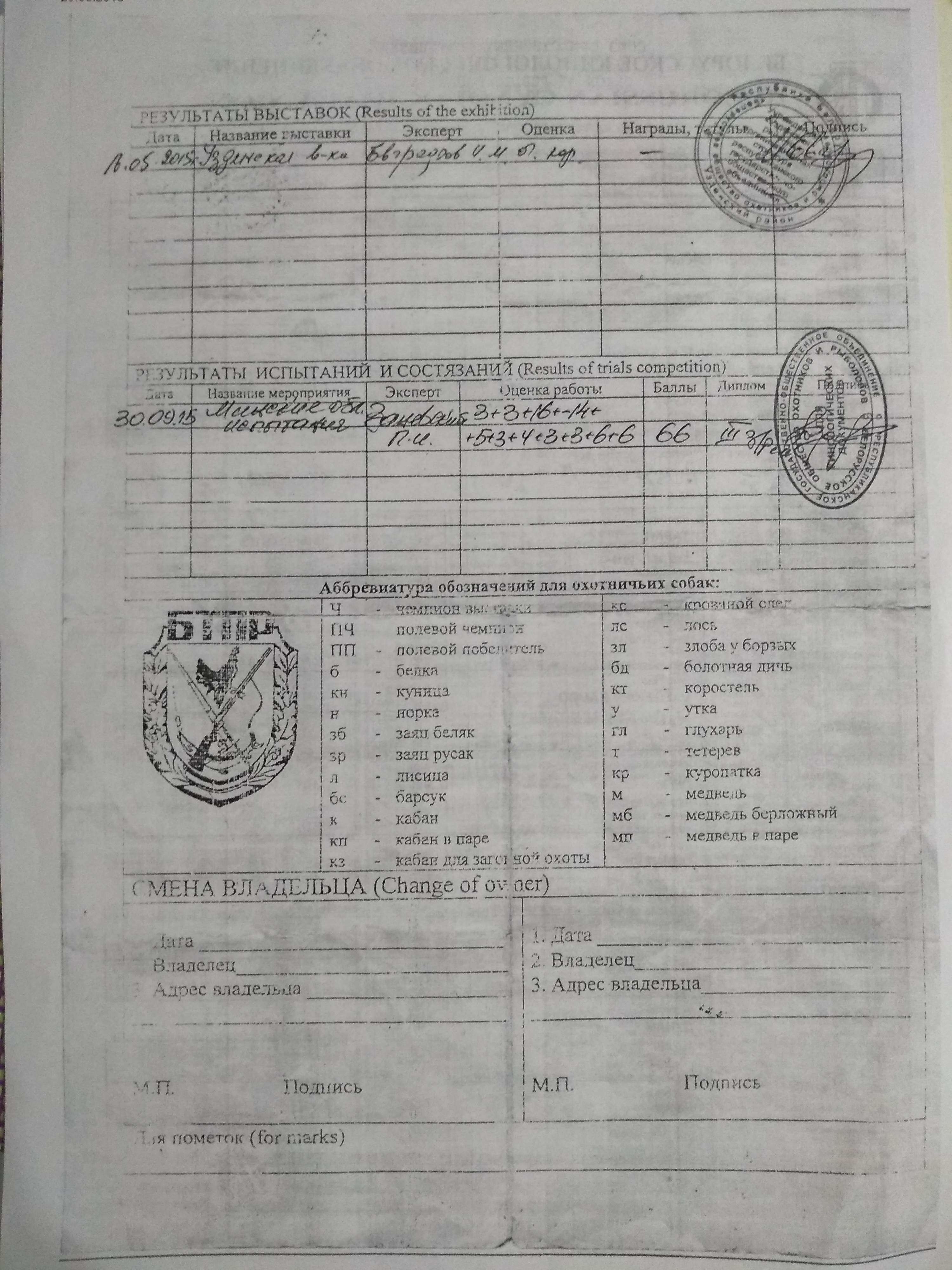 2.2.1. Все дипломы за рабочие качества с указанием по виду дичи :