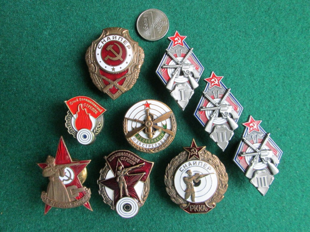 Я называю их "значками". На самом деле это копии советских знаков, прекрасного качества, зачастую весьма сложно отличаемые от оригиналов. Такая же штамповка из тяжёлой латуни, эмаль, накладные элементы (если нужны), и великолепная деталировка. Так зачем переплачивать за оригинал, если отличить его сможет только матёрый профессионал? А для украшения композиции с любимым Мосиным, Наганом, ТТ или Маузером - самое "ТО")))... Для подарка хорошему человеку - замечательный вариант... А уж как радуются меньшие стрелки, когда получают "Юный Ворошиловский срелок"...