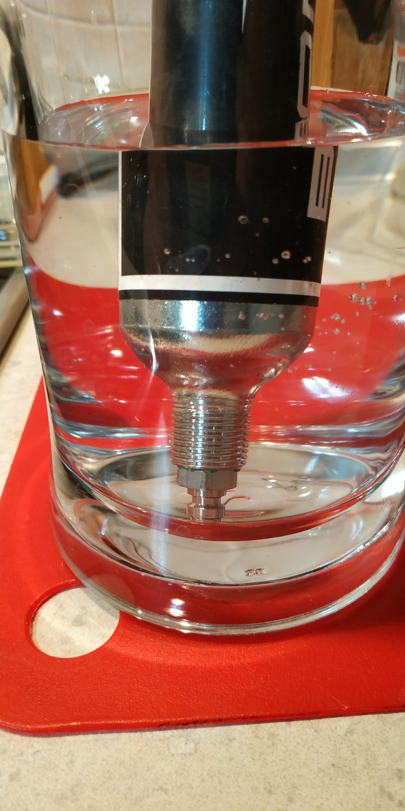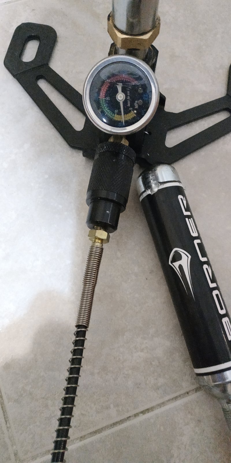 для проверки функционала и приемлемости решения был взят не коцанный квик, родной клапан изъят, имплементирован огрызок ролика в качестве клапана и всё это аккуратно надуто насосом до 65 бар.