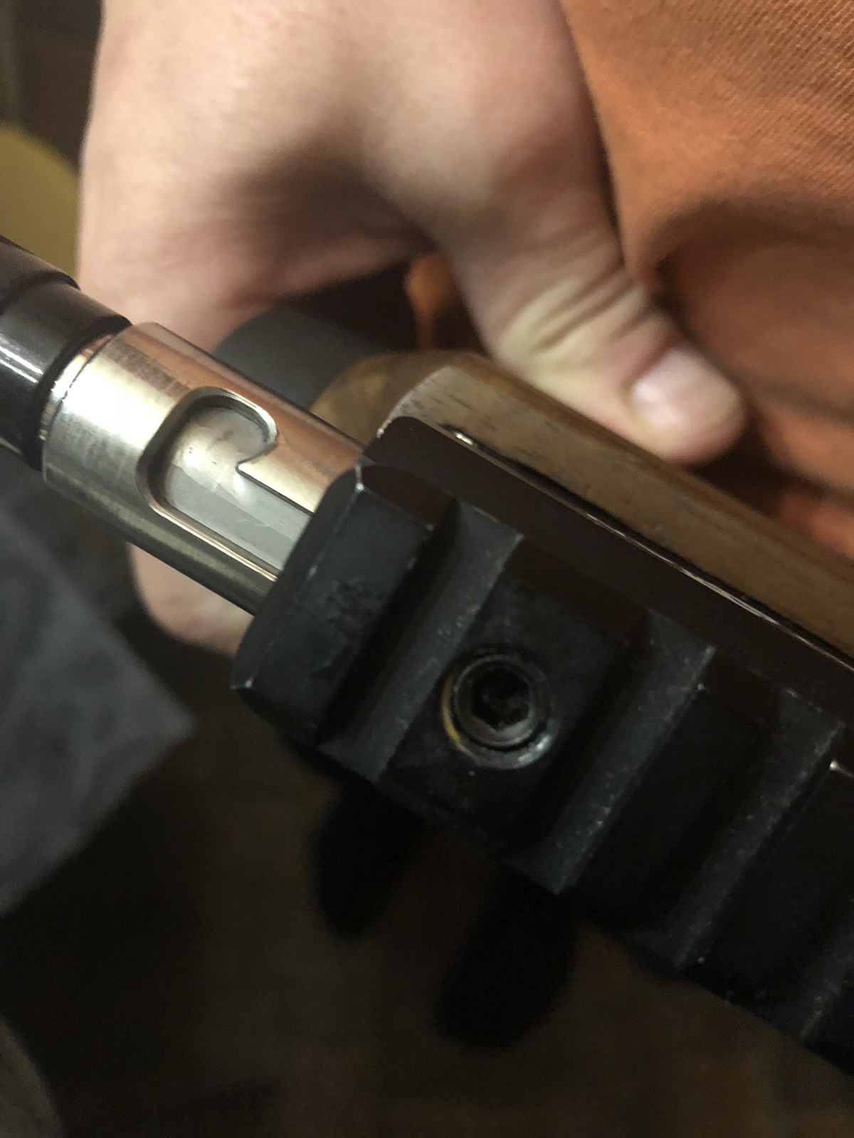 Это не пробка а винтик под шестигранник(гуджон или гужон) не знаю точно как правильно называется,если его поджать перестанет двигаться досылатель, а в досылателе выбрана как бы канавка с поворотом и когда вы досылаете пульку в ствол рукоятка досылателя опускается вниз и носик вышеуказанного винтика двигаясь по канавке фиксирует досылатель. На винтик капаешь немного резьбового герметика, регулируешь его что бы он не тёрся о досылатель и пользуйся на здоровье :uch_tiv: Так сделано на Атамане наверно и на вашей чизе так