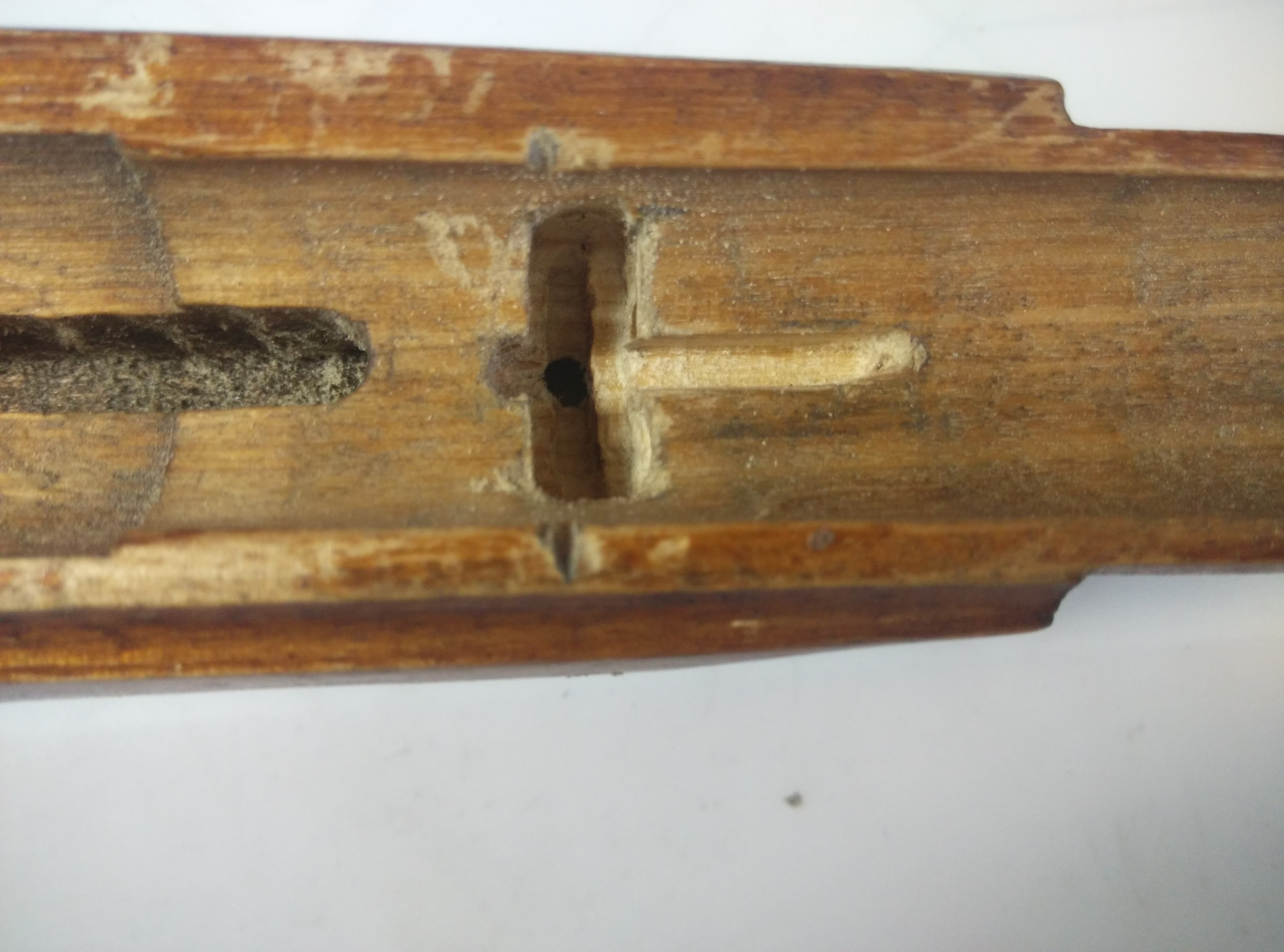 Пропиливал реноватором, круглая насадка, ей намечать длинный пропил удобно, потом добиваем вертикальными насадками. Напильник, наждачка. И примерка, примерка, примерка ...., но уже с наложенными коробками, вначале магазинной, потом с обоими. Ловим "клины" магазина, не соосности, устраняем, подпиливаем мельчайшие огрехи в дереве. Это только дремель с "зубной" фрезочкой. Береза весьма не однородна по плотности и иногда, где тверже, оставались небольшие выступы в плоскостях, это надо вычислять и убирать. Они создают "непонятки", мешают встать детали точно по месту.