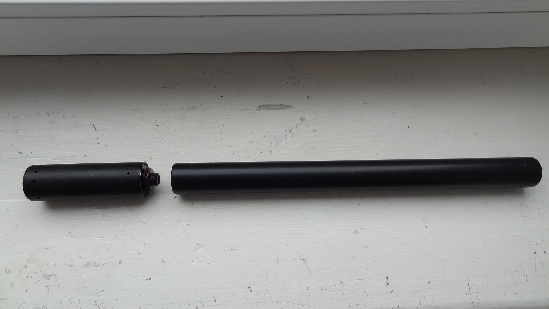 Продам саундмодератор от Егерь кал. 6.35 диаметр 28 мм длина 325 мм сажался на ствол диаметром 16.3 мм проточка длина 18 мм диаметр 14.4 мм накручивается на резьбу с мелким шагом, удлиняет ствол на 130 мм. Неразборный. Цена 40 руб. Доп. саундмодератор вкручивается в основной. Длина 98мм диаметр 32 мм. Цена 40 руб. Вопросы в личку или 8025 610 77 97