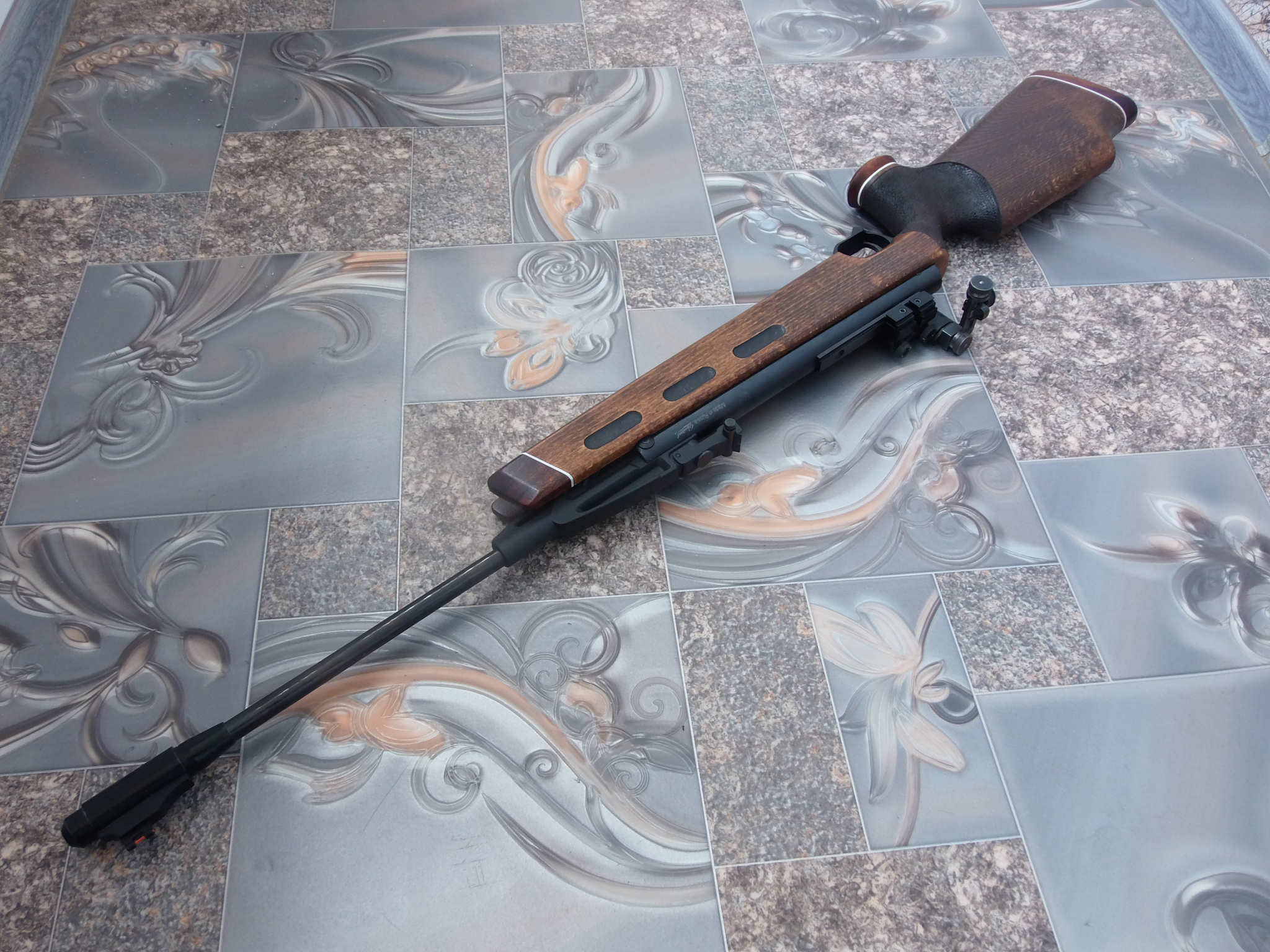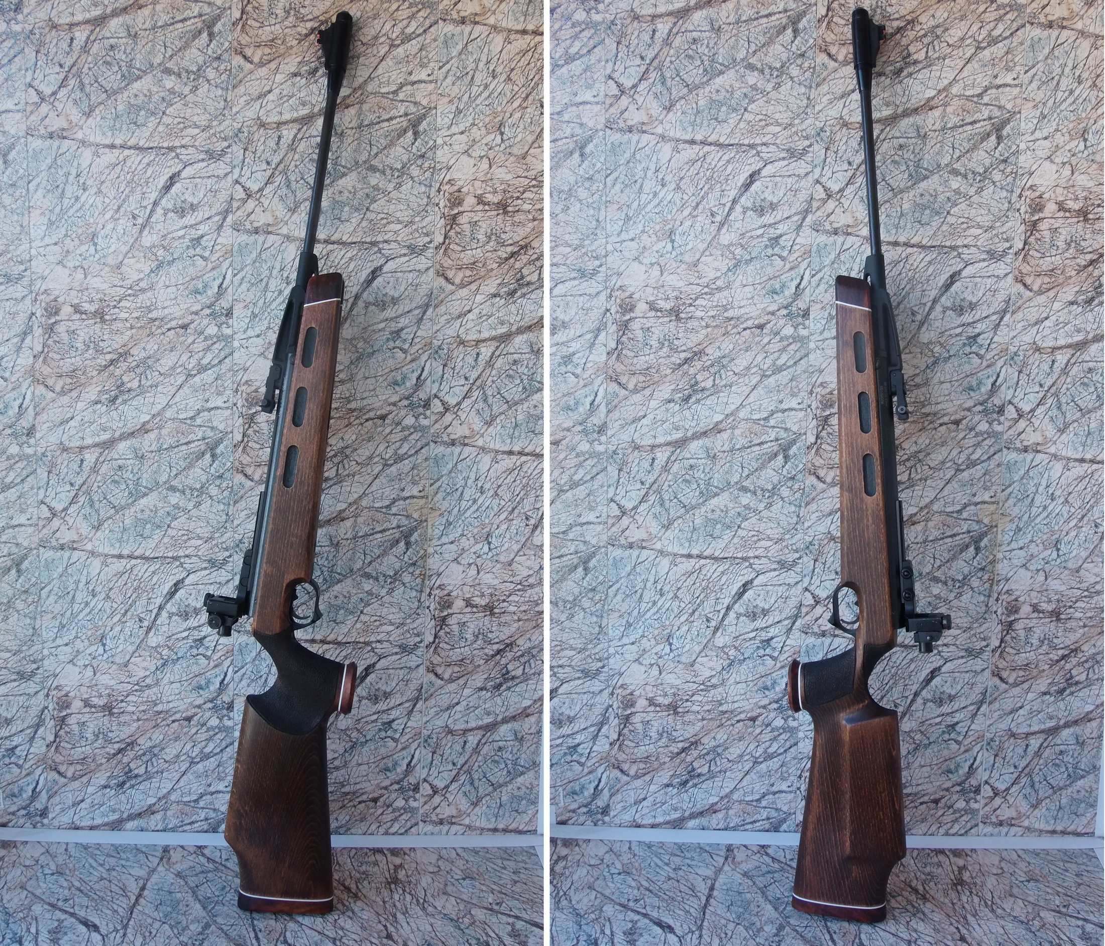 Ну поехали… В общем давно зацепила меня своим обликом, формами немецкая спортивная винтовка «Диана 75». Весьма грациозно выглядит и притягивает. Эта модель в нескольких модификациях-в частности ложи есть и с регулируемой щекой. Я решил делать более простую-нерегулируемую, просто сразу сделать щеку оптимальной высоты под свою физиономию жирную. Была в запаснике «Мурка», ждала она своего «звёздного часа», вот и появилось желание сделать ложу для нашей «МР-512» в этом же стиле и хоть внешне облагородить многими любимую за простоту и неприхотливость «Мурку». Конечно же после этого она не стала бы матчевой спортивной. Но при определённых усилиях приложенных к «Мурке», добиться и от неё неплохой точности конечно можно.