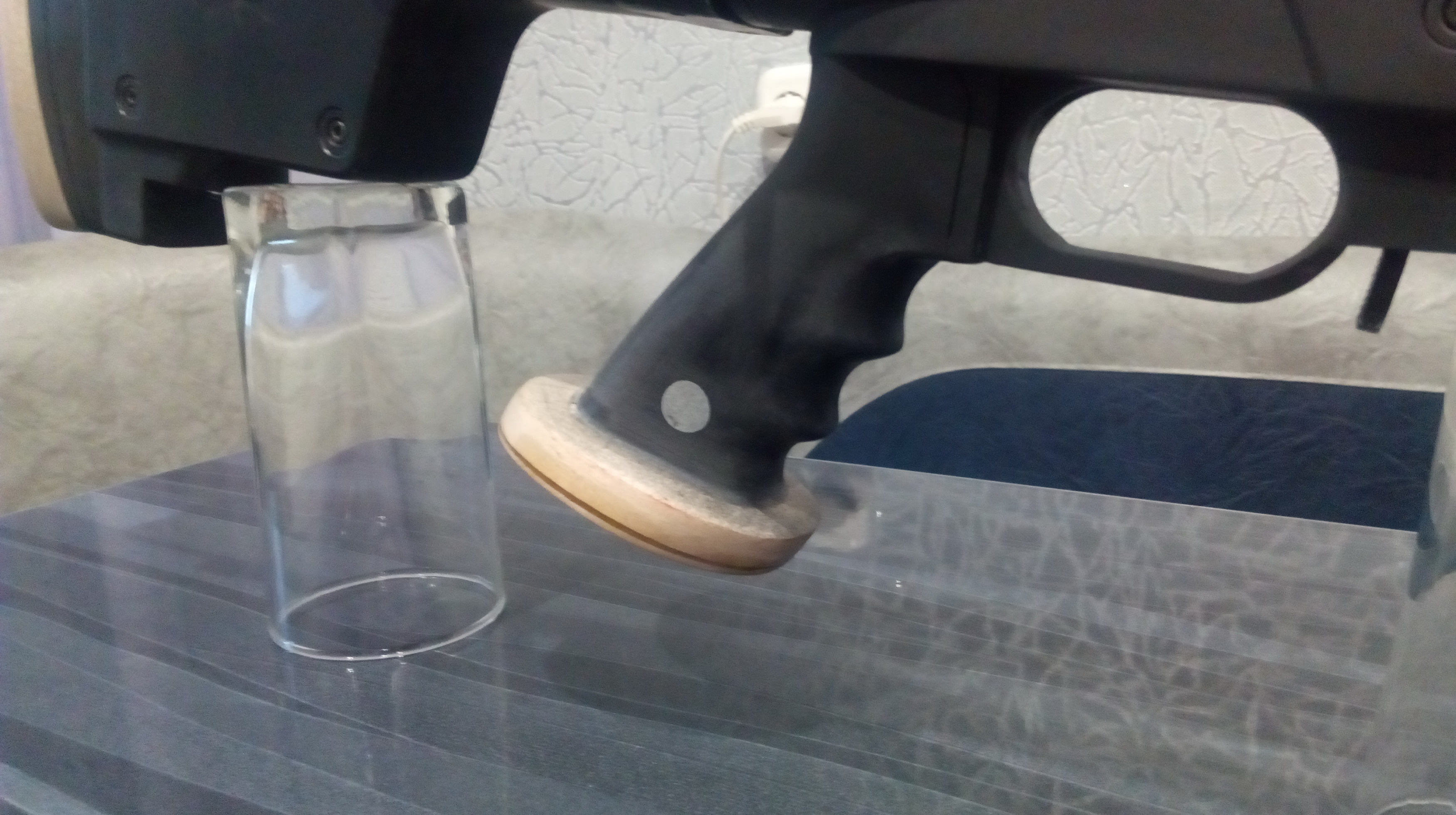 После сделал выборку под компрессор «Мурки». Посадка была отличная, щелей и т.д. никаких. И действительно-без задника изготовленного ну совсем неахово выглядел задник винтовки в ложе, а вот приложил его-ну……Пестня!!! Чтобы надёжно закрепить его на ложе пошёл проверенным путём-врезал в задник на ЭДП три самореза. Затем в нужном месте просверлил в ложе три отверстия чуть большего диаметра саморезов. И на ЭДП с метал.пылью вклеил задник в ложе в эти отверстия. Ну и для надёжности стянул длинной струбциной. Всё! На века! Выдержит даже 50-й калибр! Зубы отлетевшим задником 100% не выбьет)))) Ну и вот примерочка: