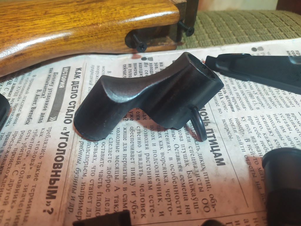 Сегодня немного разобрал его и подогнал приклад,цевье и рукоятку. Не одна деталь из перечисленный не стала без подгонки.