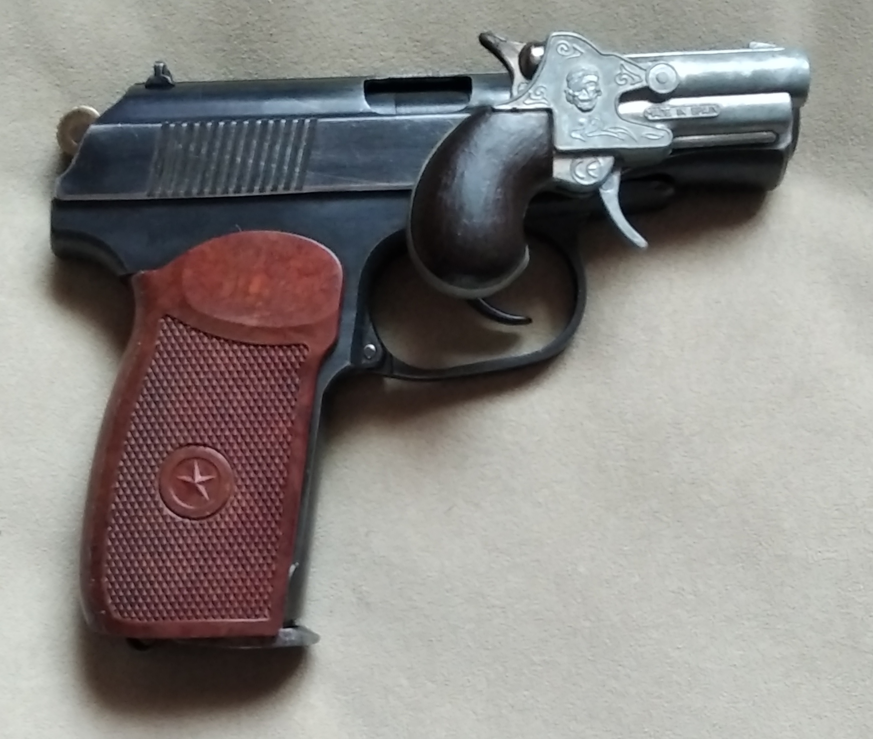 У меня в детстве был набор из 3х таких пистоликов, все разные. Может и до сих пор на даче парочка валяется.