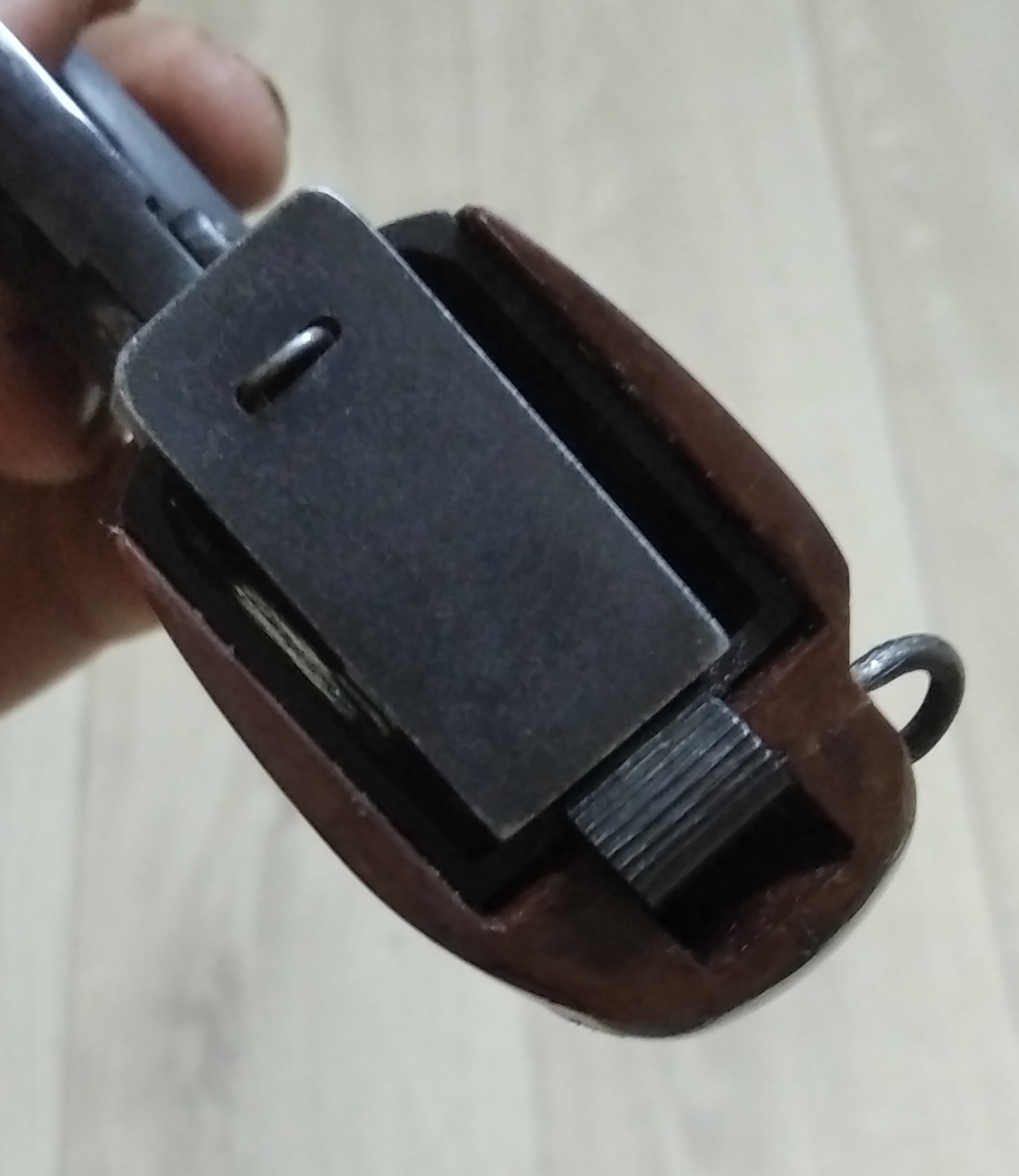 Рамка у меня восстановлена,есть фото в этой теме. И стоит задвижка боевой пружины, всё как положено. Но вот родной пневматический магазин,даже если оформить пятку как у вас на фото, длиннее и торчит с низу больше положенного. Проще для фото магазин ПМ, а на пострелять любой, который войдёт и прижмёт прокладку на стволе.