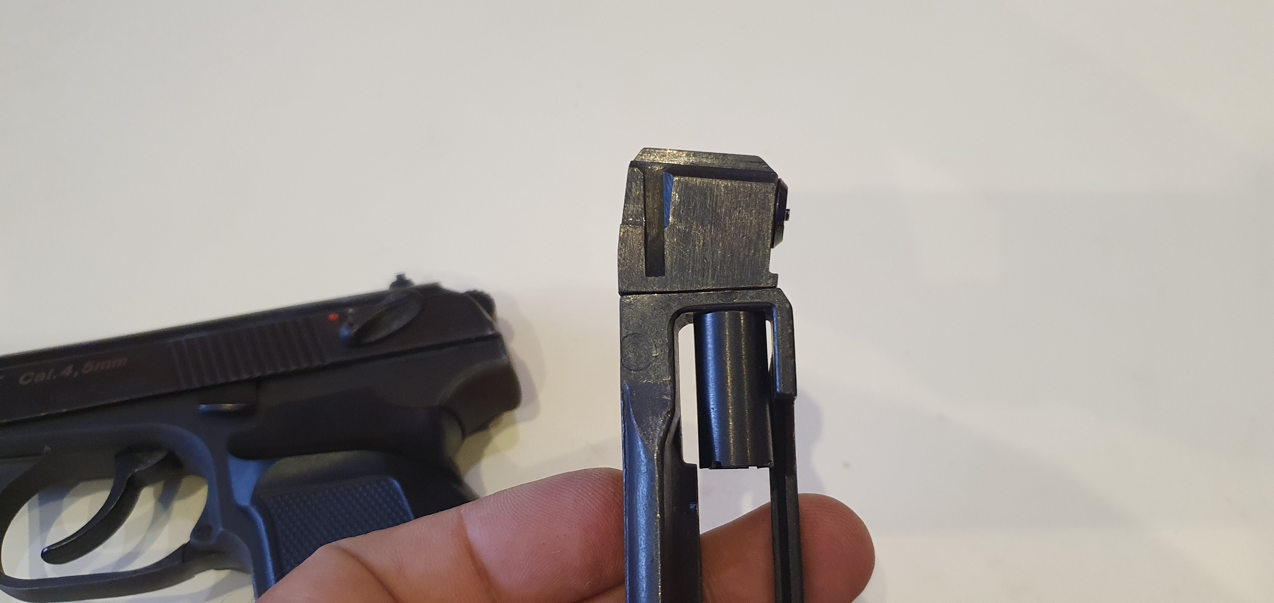 Еще есть нижняя гайка-пробка для магазина, которая подпирает баллон снизу, не попала на фото, под шлиц, заподлицо закручивается.