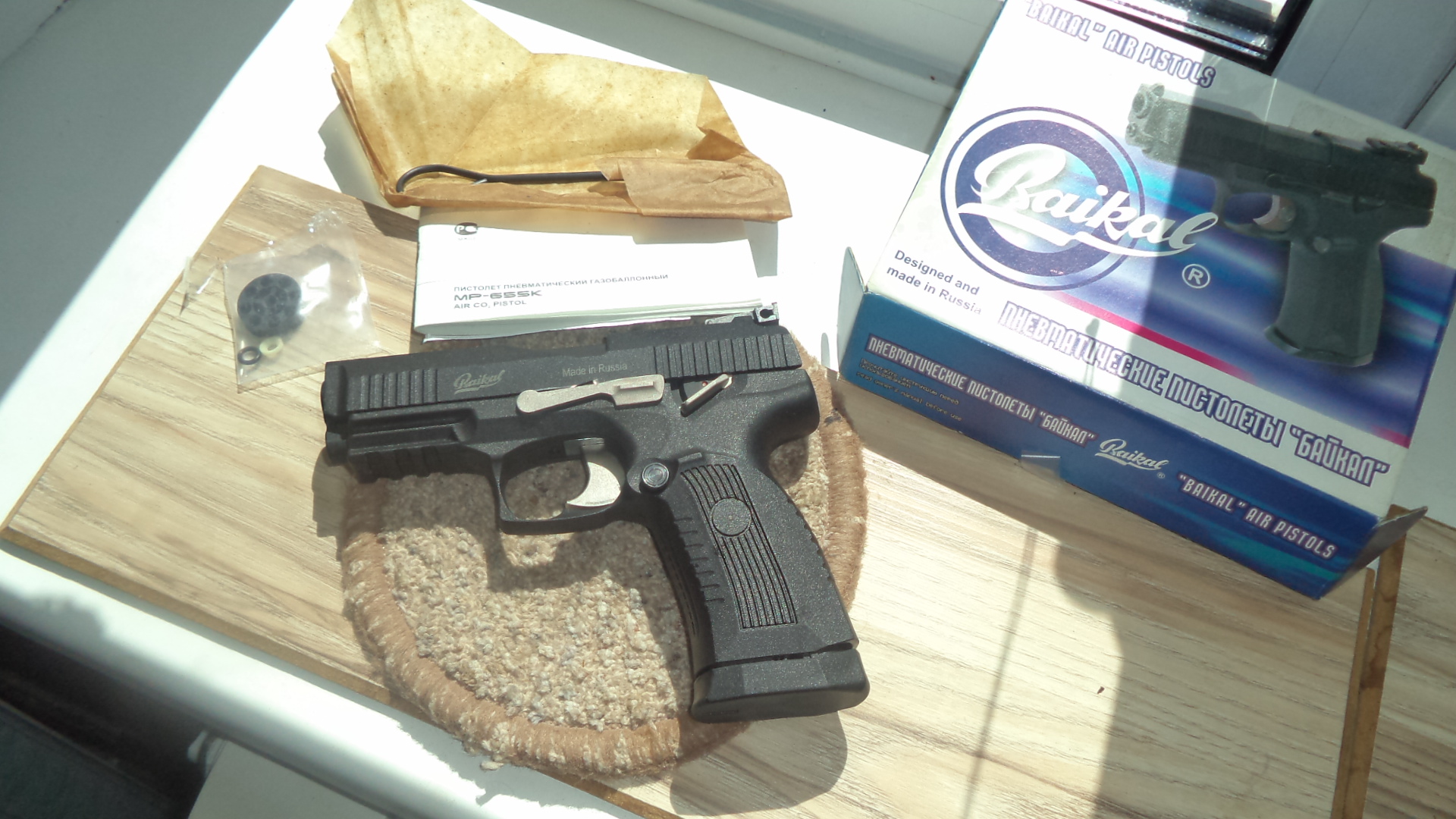 , новый без настрела , вообще. Даже баллон не вставлялся. В комплекте все что с завода , коробка , документы , чек о покупке, протирка, ремкомплект , второй магазин. Все вопросы по номеру 80336863322.