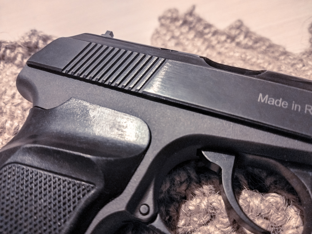 Оригинальная скоба позднего ПМ (родная литая имеется), дутая зз (имеется и штампованная), красный курок, фрезерованный спуск, оригинальный выбрасыватель с гнетком. Магазин на оригинальном номере 108577. Состояние нового.