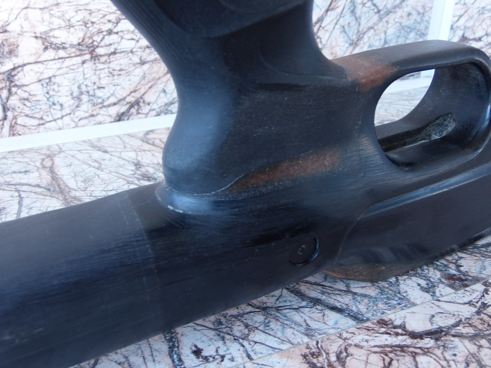 Интересная на мой взгляд работа, эту новую задумку хотелось сделать не хуже той. Ложа на момент покупки была в таком виде. Регулируемая по высоте щека приклада и надёжный крепёж в прикладе стальных маховиков регулировки (внутри приклада стальные втулки) конечно обрадовали: