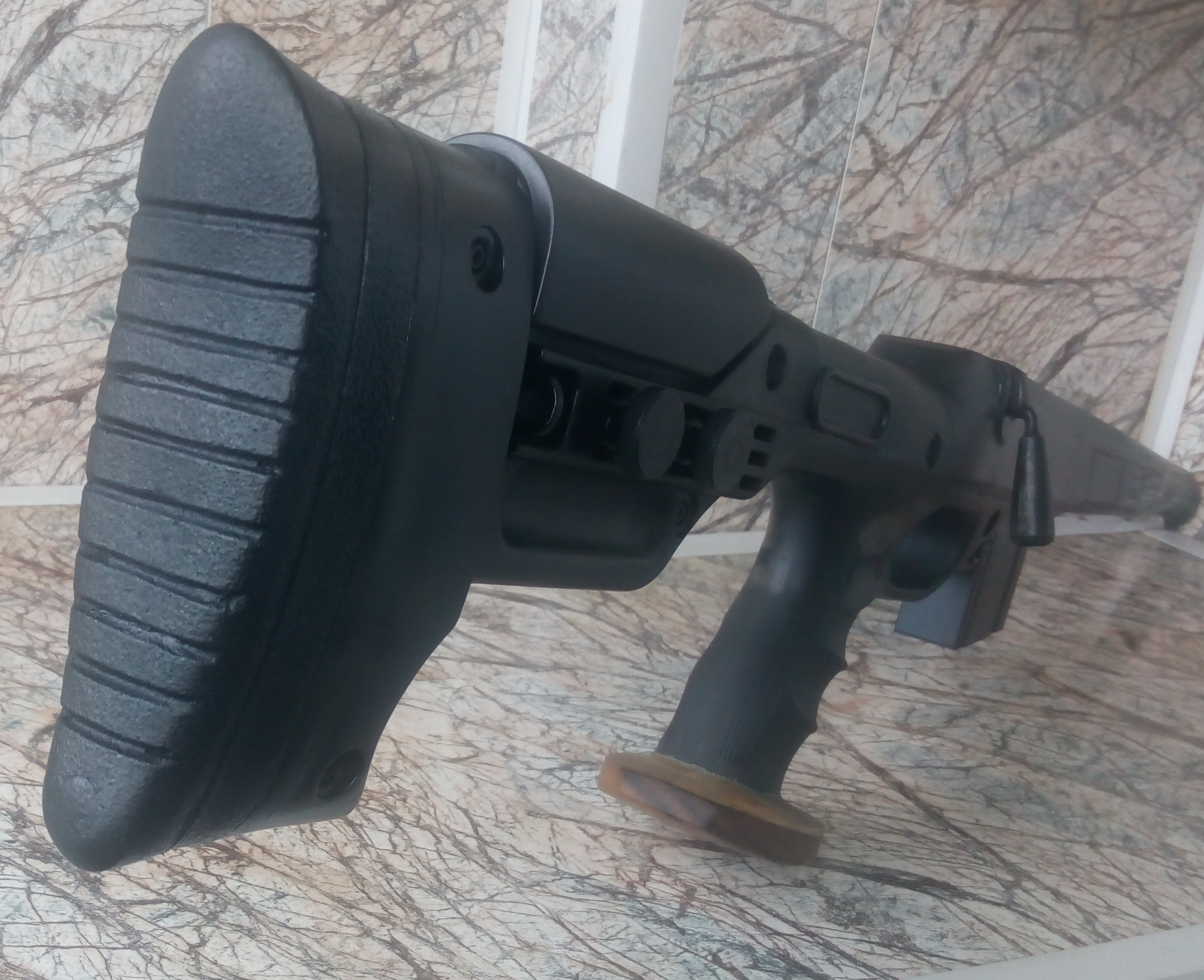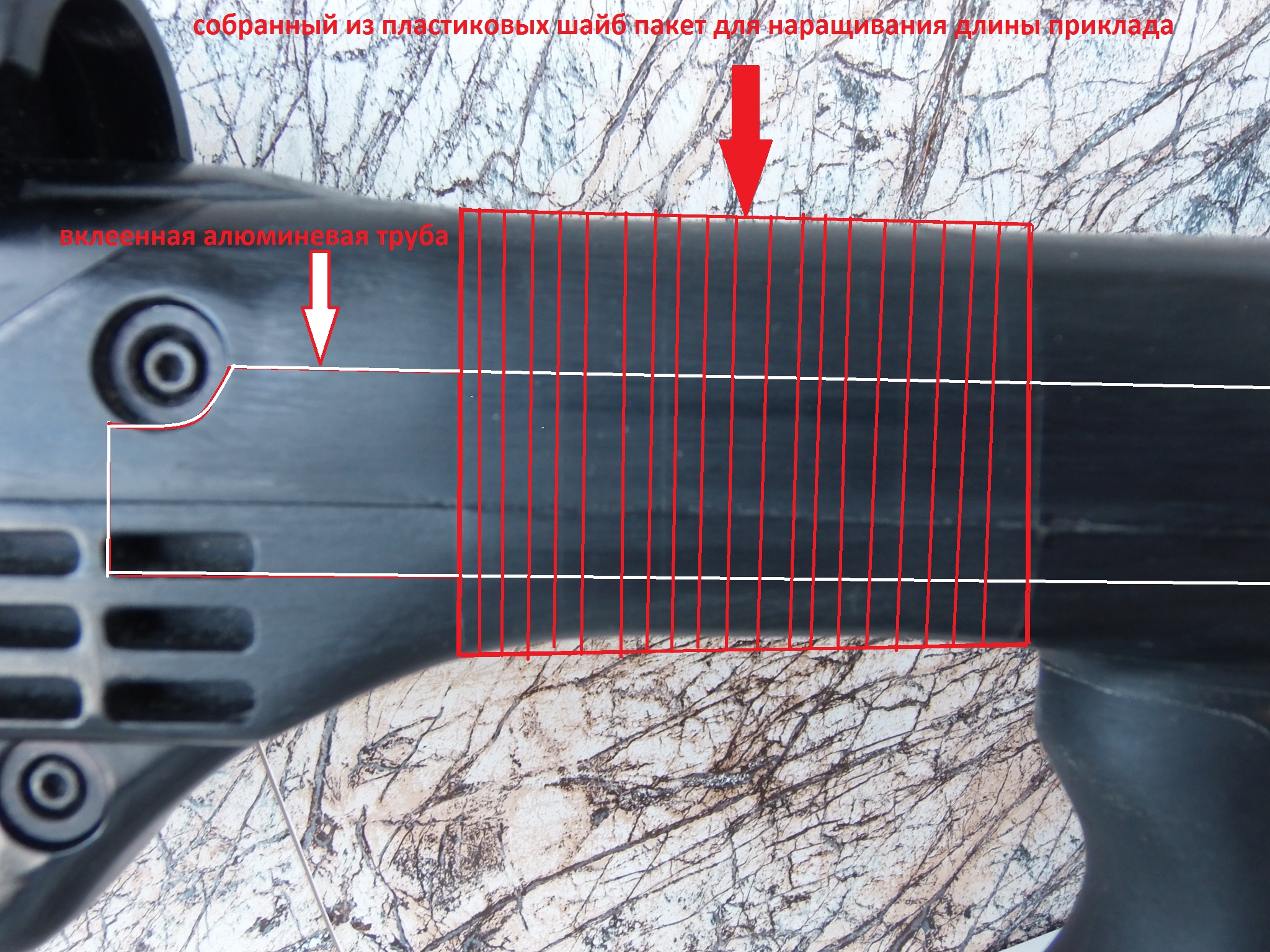 Ложа разбиралась без проблем на две половины( и приклад и основная часть)-это было большим плюсом. Ложа имела много рёбер жёсткости внутри, перегородки, отверстия, пустую шахту под магазин. Чтобы в эту ложу было возможно разместить «Мурку»-требовалось рёбра удалить, а всё остальное заделать вклейкой всяких вставок. К слову расположение шахты магазина( его в комплекте с ложей не было) лично у меня вызвало недоумение. Она была расположена настолько далеко к носу цевья, что элементарно не совпадала с окном экстракции гильз с правой стороны ложи. Не знаю кто это проектировал, но руки отбить не мешало бы))) Вот примерно: