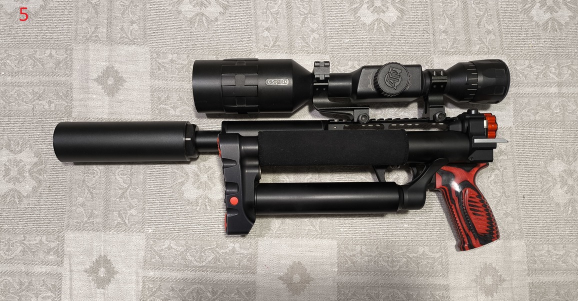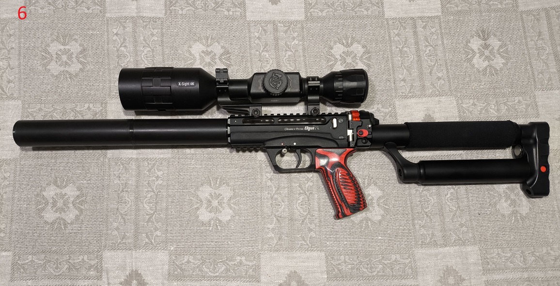 1. Винтовка Леший 2, 6,35мм. Из последних партий с продольным редуктором. Отрегулирована, обслужена, сделана регулировка стволика по вылету и установлен жиклер 0,7мм на переводчик барабана, механизм перевода барабана работает мягко и тихо, два металлических барабана. Состояние новой. Редуктор на 145. Стволик Альфа 350 мм., отполирован. Настроена на слаги FX 2.2 гр. скорость 250 км/ч, летят очень кучно. С одной заправки 290-145 два с половиной барабана. Работал на дистанциях 5,0-12,0 м. не по бумаге. Прицел цифровой день-ночь ATN X-Sight 4K Pro 5-20, привезен из США. Не смотря на габариты, пользоваться на лешем очень удобно, благодаря аэрлифу 90 мм. Прицел с баллистическим калькулятором, но можно стрелять и по сетке. В комплекте к прицелу два фонаря и комплект колец. Так же в подарок: расширенный ЗИП к винтовке на все случаи жизни: вся внутрянка, резинки, запасной редуктор, вставка в обечайку. Станция настройки редуктора. Пули Slug FX 2,2гр. 300 шт. Пульница. Набор для чистки стволика. Кейс пластиковый для переноски. Рюкзак для переноски. Коробки, документы. При продаже винтовка в состоянии 3дж.