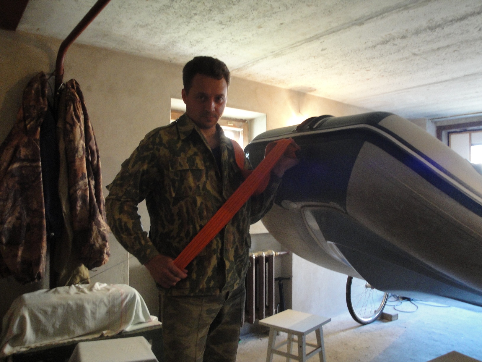 Спасибо уважаемый. :-): Такие колёса и лямки не случайны, дом у меня недалеко от З.Двины, только вот подъём очень высокий :-( 100 метров под 40 градусов. Поднимешься просто налегке, одышка начинается, тягаю лодку в гору, с горы с мотором на транце, до дома по дороге ещё метров 400 качу транец у РИБа крепкий, другой бы явно оторвался от таких нагрузок. Да и лёгкая эта лодка 40 кг, а мне каждый кг на пуп. Борта (баллоны) большого диаметра, нос поднят, не забрызгивает волной. :co_ol: Притянул в гараж, протёр тряпкой за 5 минут и пиво пить, :dr_ink: а с жёсткой сланью много неудобств, лодка с ней тяжелее попавший под неё песок протирает пвх при глиссировании на 20-30 км. :smu:sche_nie: Я на рыбалке заплыл на 30 км вниз по течению за два дня, погода испортилась, дождь, ветер, поднялась хорошая волна, а плыть назад нужно. Вот тут РИБ и нужен. Я уже одну сланевую лодку угробил. :-( Да и в гараже разобрать, под сланями песок вытереть, тут 5 минут не хватит. :du_ma_et: Так что только РИБ. :co_ol: