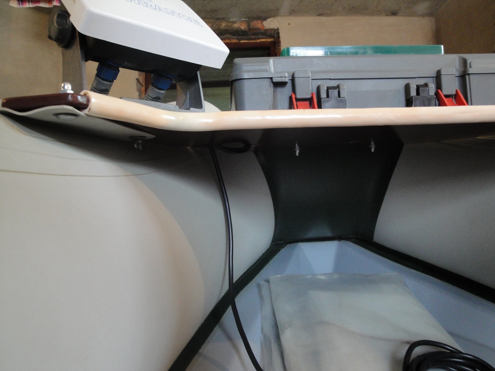 ЗДРАВСТВУЙТЕ УВАЖАЕМЫЕ РЫБОЛОВЫ. :dr_ink: Давайте в этой теме обсудим обустройство и оснащение своей любимой лодки для удобства рыбной ловли. :smu:sche_nie: Купил лодку РИБ 2.85 Велес, поплавал на ней несколько раз и понял, что нужно обустраивать её под свои задачи. Ловлю троллингом в основном один, хожу на 20-30 км, на два три дня, мотор 5 л.сил. :du_ma_et: Сплю в лодке, сделал тент из клеёнки, прячусь от дождей, и спать теплее, как в палатке. На дно вырезал коврик из линолеума на полиуретане, теплее, и шумоизоляция. :co_ol:
