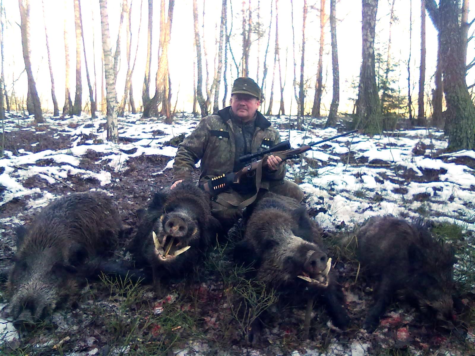 Радиация нас не пугает. Не одного кабана по этой причине закопали. Страшнее АЧС (африканская чума свиней). Все прилегающие к Витебской области районы Могилевской уже закрыты для охоты. Если будет выявлен хотя бы один случай падежа кабанов из за АЧС в районе , его тут же закрывают. В Быховском районе пока чисто. Все добытые кабаны проходят проверку на трихиниллез, радиацию и, естественно, на АЧС. Егеря находили трупы, но это так называемая естественная убыль. Доживем до марта, там видно будет. А пока каникулы.