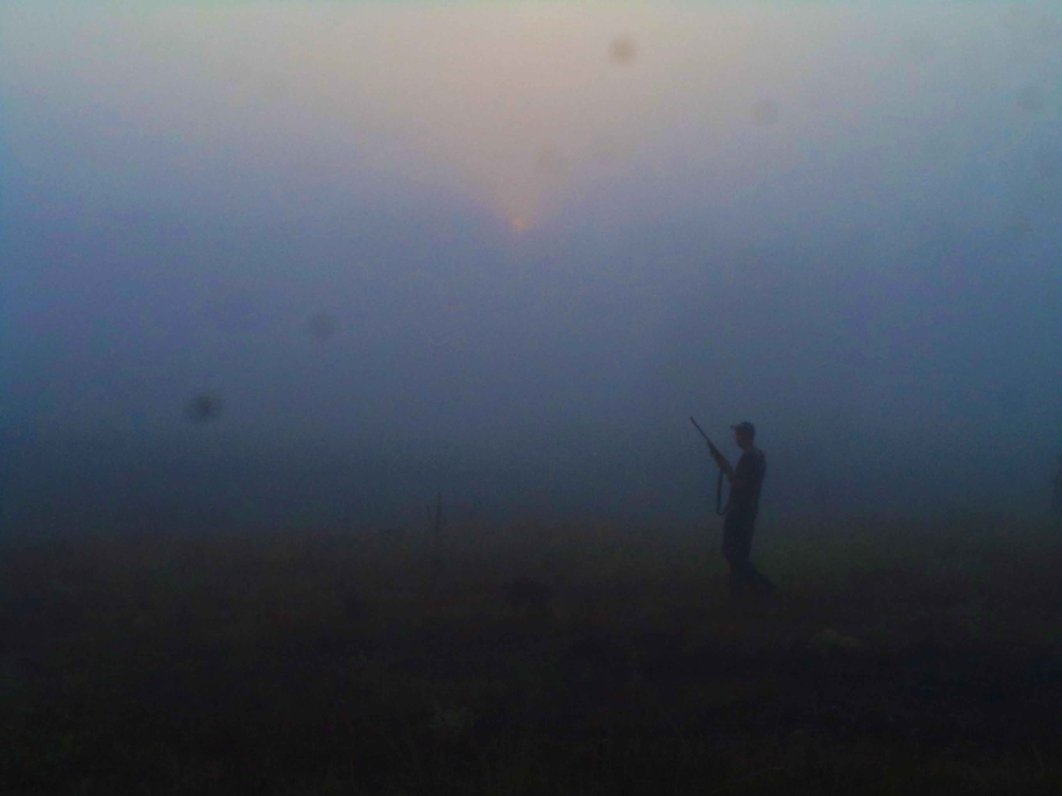 ...а тут и мужик на Иже 49-ом добрался, - кажет за самогоном ездил – от волка первое лекарство, кажет - блуданул маленько,…….ну а мы чайку с термосов сёрбнули, определились кто с кем и куда, нам попался прокурор :) , и пошли в разные стороны по четыре - пять душ….манки стояли в 300-400 метров друг от друга, испарина от земли да травы по утру пошла, туманом стала, диск солнца уже подрезал верхушки маслин посадки…ну и понеслась птичья душа в рай… и далее сказ такой - «да и было их принято тьму пред вратами божими, и не смог страж их грозный уже сие остановить, но поставил их с норовом пред собою, да пред очи зоркие, да и узрел он в них диво охоты с гордостью, да и молва людская разносила потом быль эту, во все стороны громким эхом, и даже паутины нить с каплею росы содрогаясь даже опала среди покоренной степи»…налупили в этот день по норме каждый, …наварилось сие в казане потом, да отобедалось гарно со смаком….ну да, продолжу…. как солнце в темя припекать начало пошли с одним сыном степи утку на ставе гонять - взял он лодку пвх-ку, зашел с одного краю да заплыл, ну а я с другого боку, пеха обошел став у дамбы да встал помеж молодого камыша - до воды метров с 15 будет. Маленько ветер подняло, кисточки камыша колыхает. Я бинокль до глаз и гляжу – гребет… от того места до протоки, где я с молодым камышом, метров 250 будет…подплывает, захекался сын степи, и кажет - …. тут она, прячется, сейчас будить будем… и только сказал, как тут крыжень влет, да над самым камышом, аж пером по нему бьет…я бахнул… да мимо, и сразу бинокль до глаз - крыжень крутанул на ставом и сел в его начале, а морячок и сам это увидел и с матом опять погреб за ним на другой конец става…вообщем, други, верьте или нет ну таких ходок у сына степи, а теперь морячка, было еще две!!!! А крыжень, всё крутил задом и крутил с налётами-перелётами – видать местный,…тут уж он и меня достал – вылез я из камыша уже на дамбу, залег в траве и биноклем, его бачу-веду – летит, встречный, низко над водой, перед дамбой подымается в последний свой залет-пролет, подлетает метров за 30, встаю, он делает крен вправо и вверх, отпускаю, вывожу на три-четыре корпуса и 6-ой бахаю…перекинуло бедолагу и шмякнуло на воду…тут уж морячок как увидел, обрадовался, ручками замахал, заголосил аж заплясал в лодке…ну а потом, перед кушаньем-застольем «сходили» еще раз на «перепела» - ну так чисто выгулять прокурора – из под маслины у него в 5 метрах встает фазан, так тяжко, толстый, хвост длинный, кряхтит в лету, тот поднял свою зенитку, кричу ему--- «нииизяяя», он опускает свой руж и спрашивает - …а это было чего, утка? ....Ну с камрадом, мы уже ржали по-взрослому, особливо после его ответа –….. ага самэц., крупный, двухлэтка…вот такое други у меня было открытие на перепела и на утку…фоток немного было и то на телефон…но сомнение, как говорят на Руси, в душе затаилось, - али правильно охоту заделали, на готовое, приманутое да отстрелянное….тож, други, чей-то, в зачет сие открытие идет или нет я и сам не знаю. Особливо по люду, теперешнему, нашему южному… вот такая охота у меня и вышла …