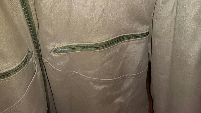Куртка охотничья демисезонная. С каждой стороны по одному насыпному карману и одному закрытому непромокаемому. Один нагрудный. На спине карман/рюкзак. Материал - брезент с пропиткой. Не шуршит, не промокает. Утеплитель-тонкий слой синтепона. Комфортно до -5С. Размер 50-52 (L). Отличное состояние. +375 двадцать девять 65699семьпять