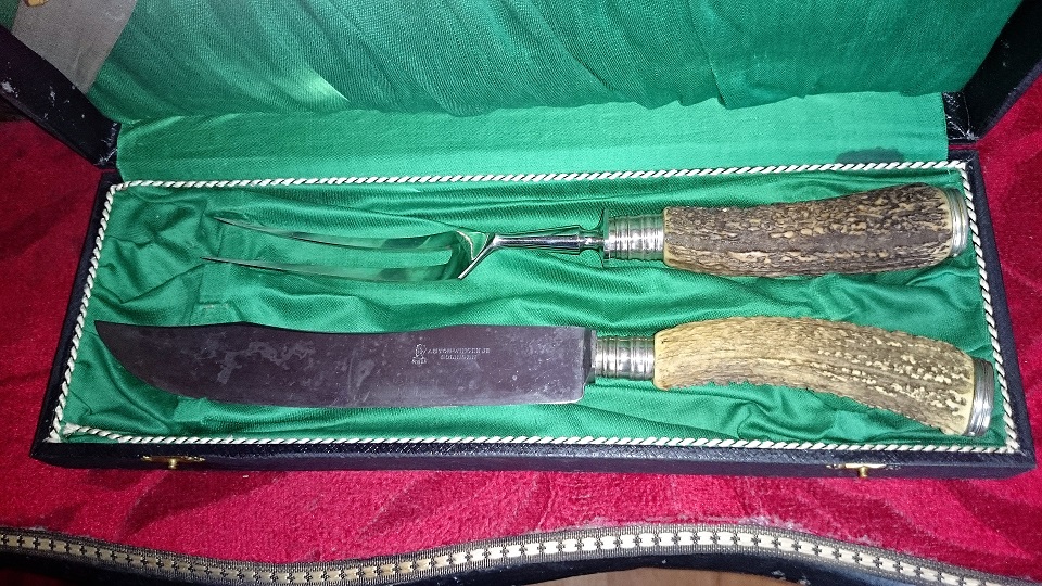 Продам элитный набор охотника для пикника в родной коробке !Фирма Золинген Германия начало ХХ вв. Ручки предметов сделаны из рога лани. Это будет лучшим подарок "себе " или вашему любимому человеку! Цена 525 рублей. :gar_mo:nist: