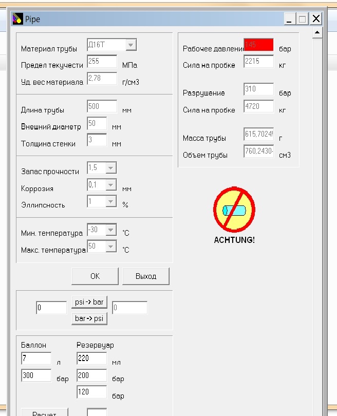 Матадор, Сверчок например труба 38 стенка 3 по проге имеет рабочее давление 187 атм, разрушение на 426. примерно, редуктор в дедушке настроен на 150 , тоесть производитель за ведомо подвергает нас sui caedere , заявляя рабочих 220 (а в некоторых источниках 250)