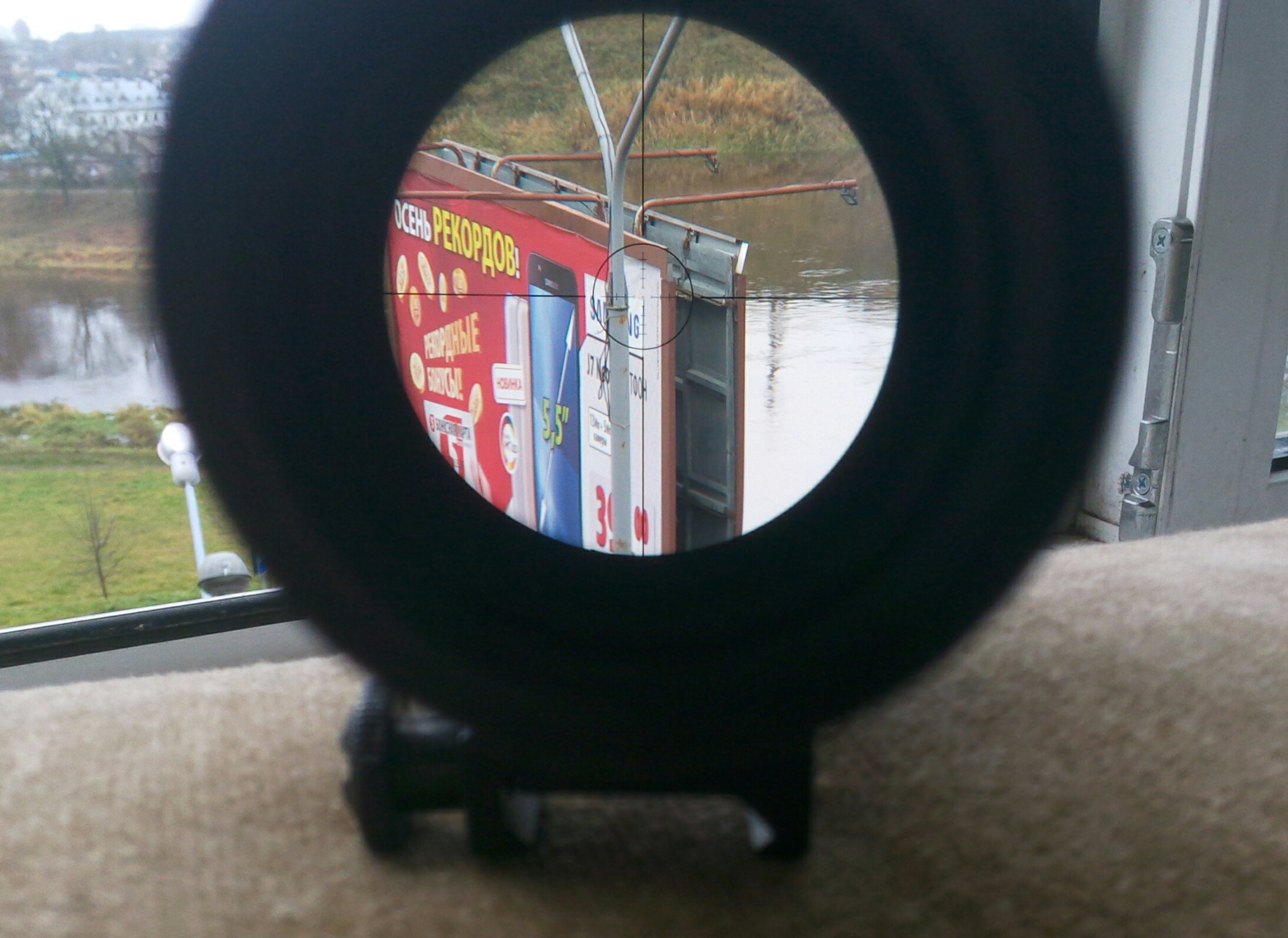 Отлично все передается. Кладете прицел так, чтобы расстояние от объектива до стены было 1-2 метра. Желательно положить напротив светлой стены, но подойдет и не очень светлая, тогда придется подсвечивать фонариком. Направляете камеру, того же телефона например, в окуляр прицела на расстоянии "эйрелифа", то есть в фокусе окуляра, примерно в том месте, где находится глаз во время прицеливания. Единственная проблема здесь - это ловля оптической оси прицела с ловлей сетки в фокус. Но если не алкаш и руки более-менее стабильные, то все отлично фотографируется.