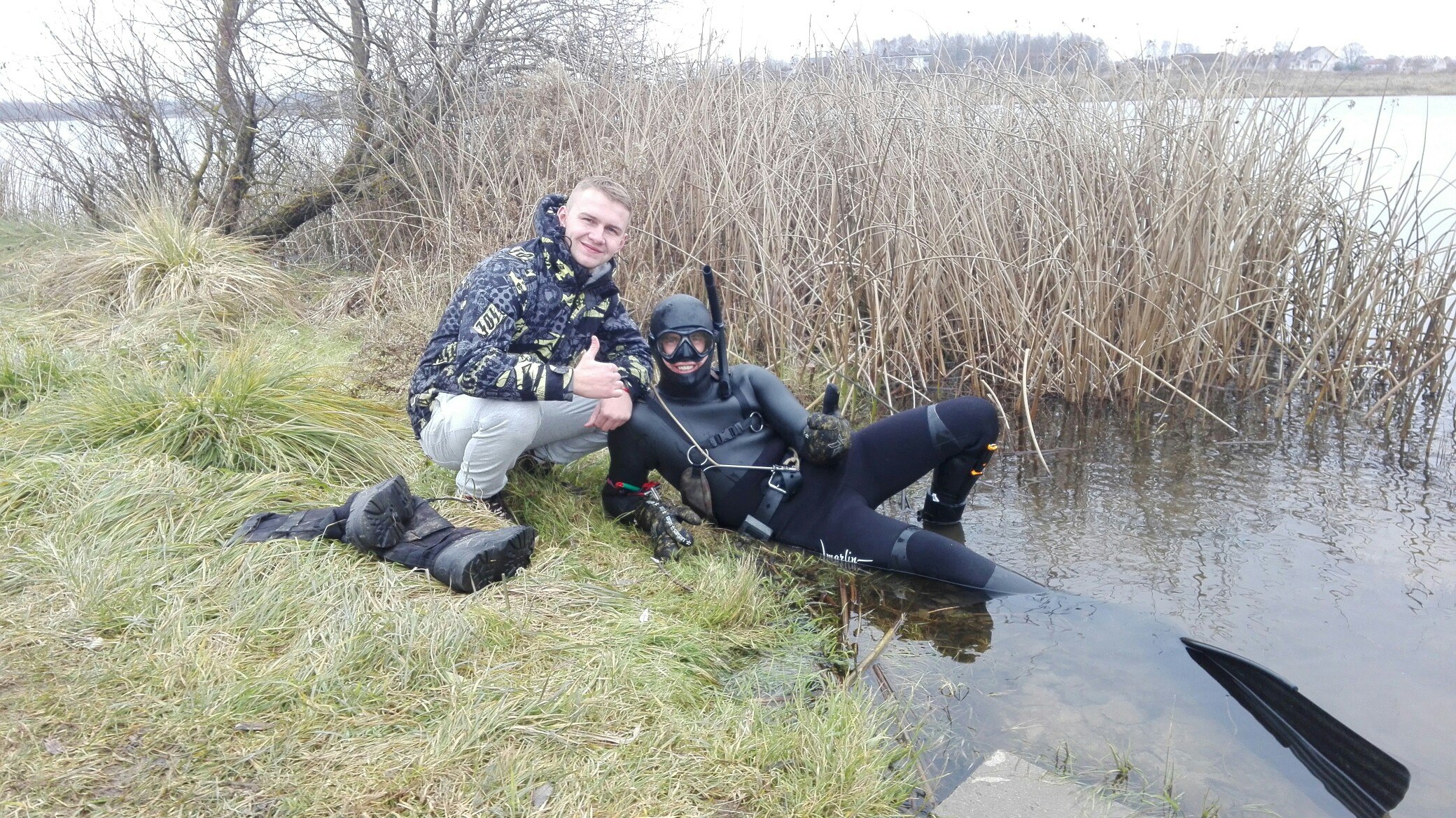 Ещё пара часов таких поисков, и мои помощники заскулили на берегу. Они кричали «возвращайся, мы замёрзли!», а рядом с ними стояла молодая девчонка и бросала спиннинг, и не жаловалась на холод; «стыдно должно быть хлопцам», - подумал я про себя и нырнул снова.