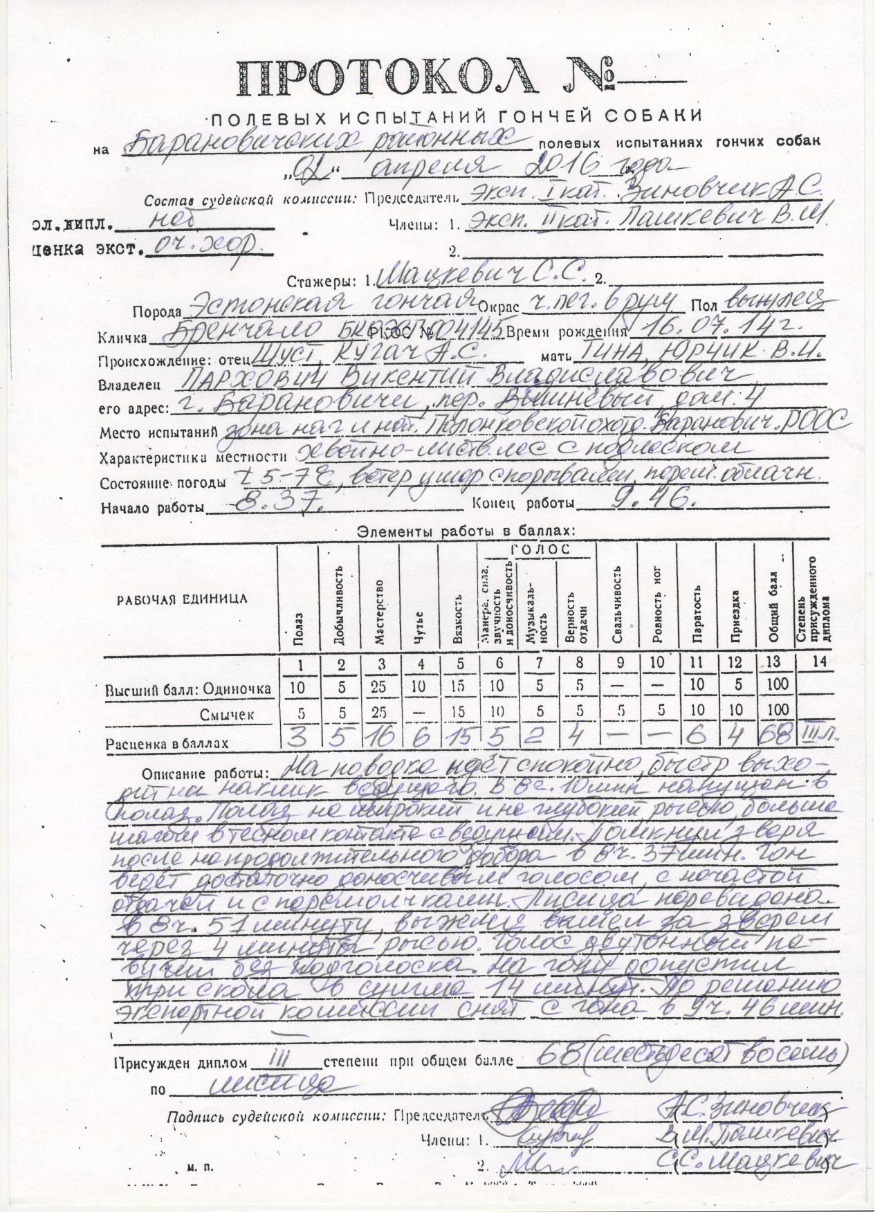 02. БКО ЭСГ-004145 ; 16/07/2014, Бренчало, вл. Пархович В.В.