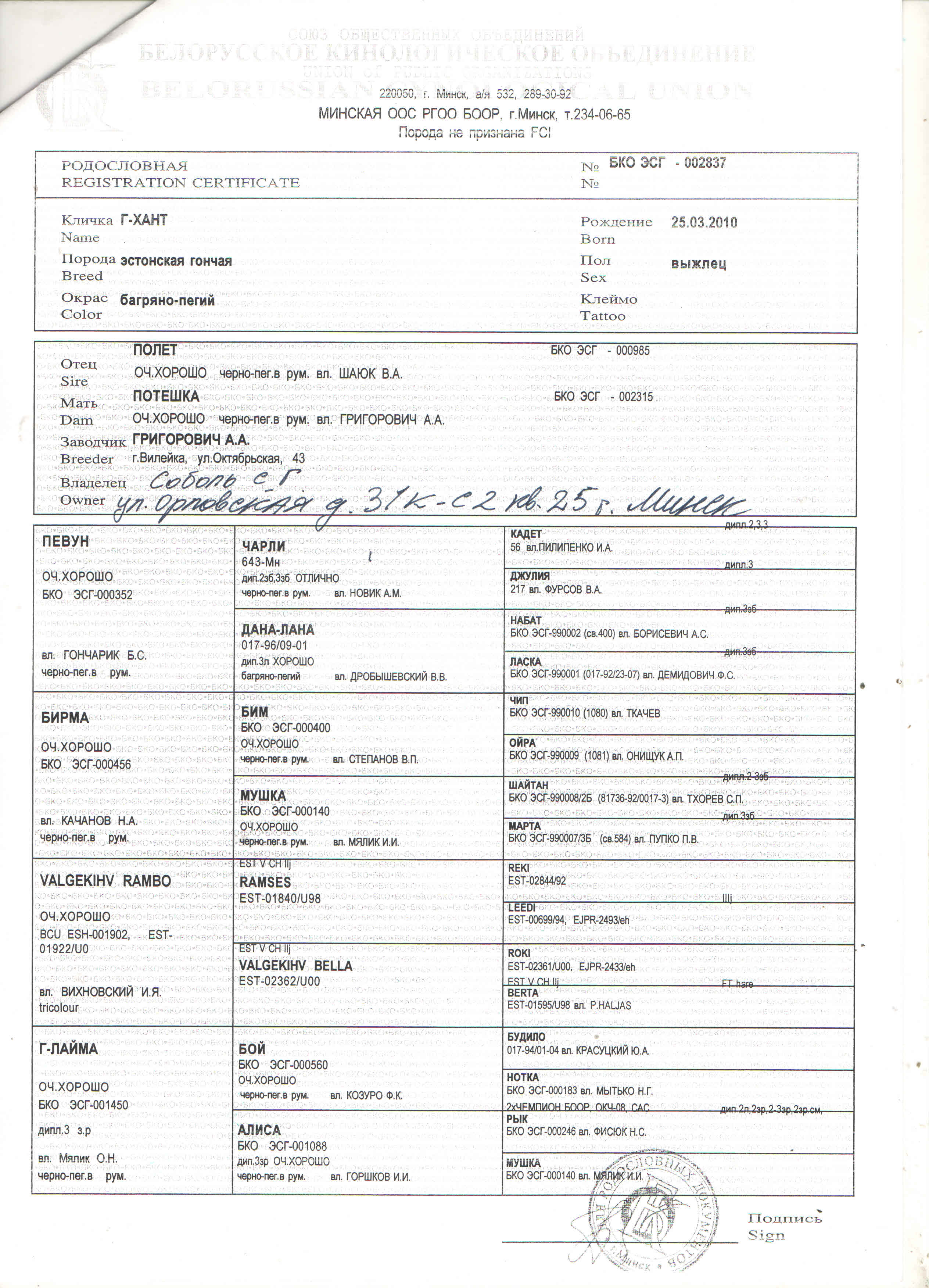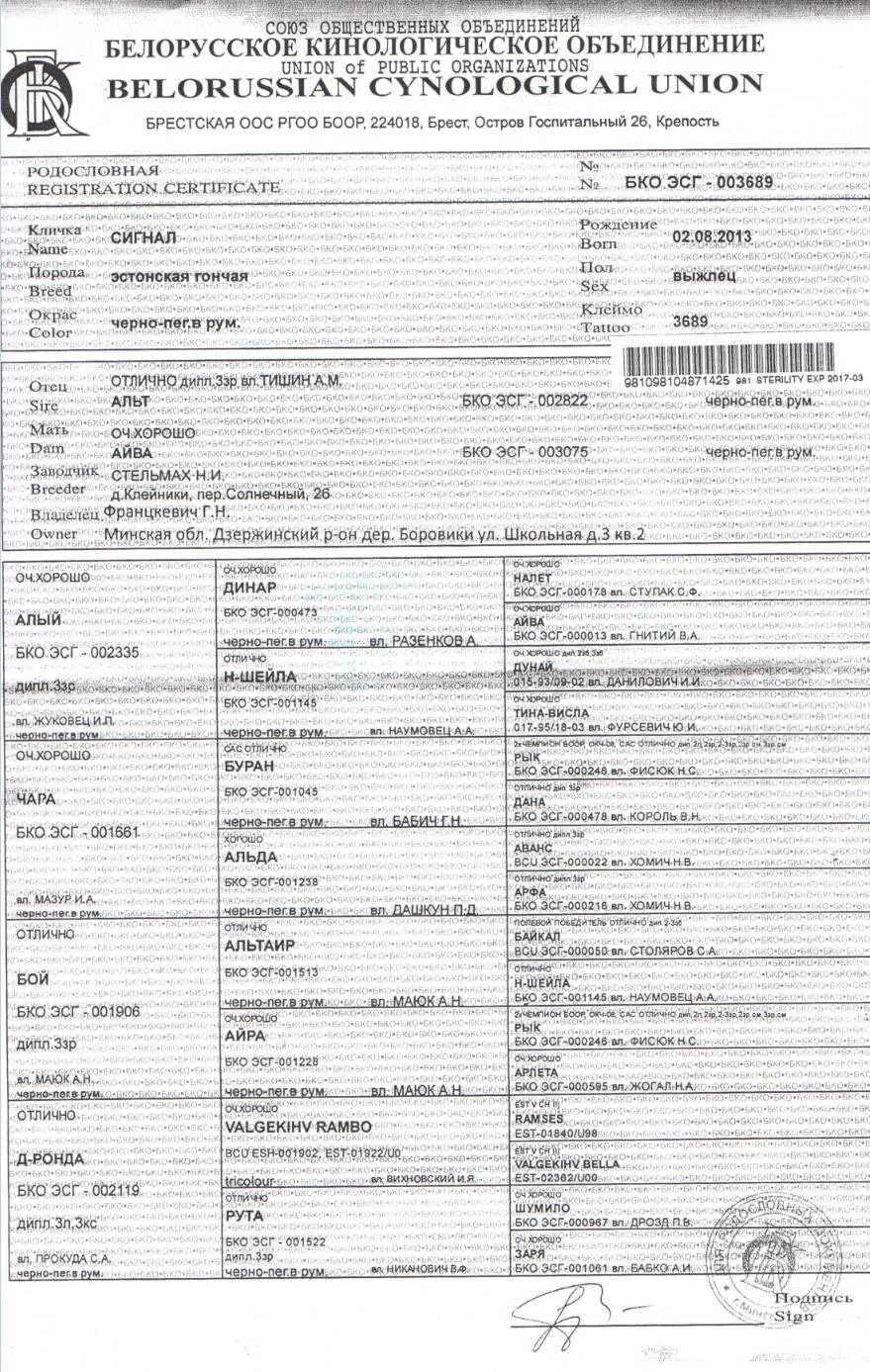 Думаю информация о дипломированных выжлецах Эстонских гончих в РБ будет интересна для планирования вязок.Было бы не плохо, если бы владельцы добавили контактную информацию (мобильный телефон), упомянули потомков с дипломами.