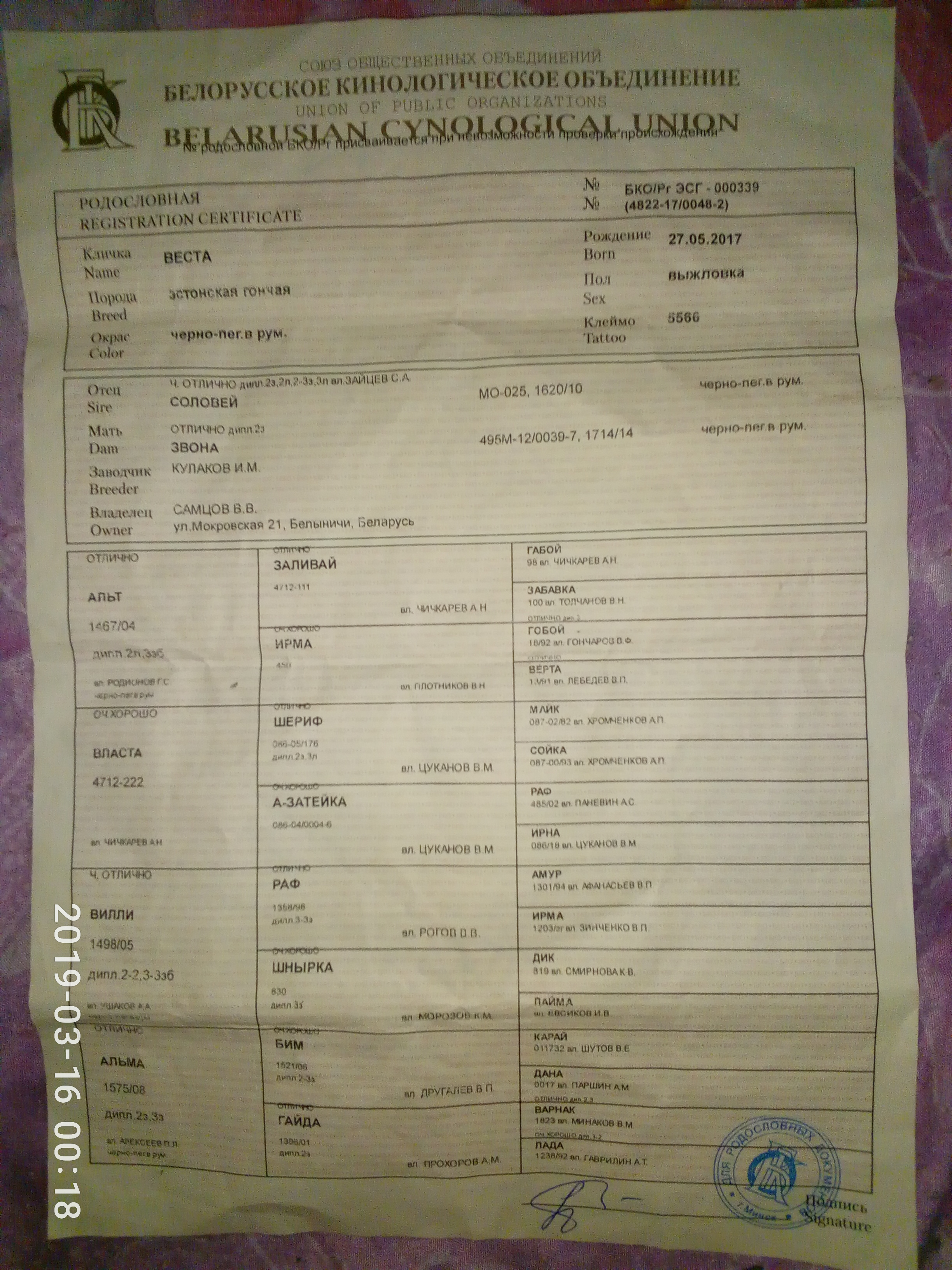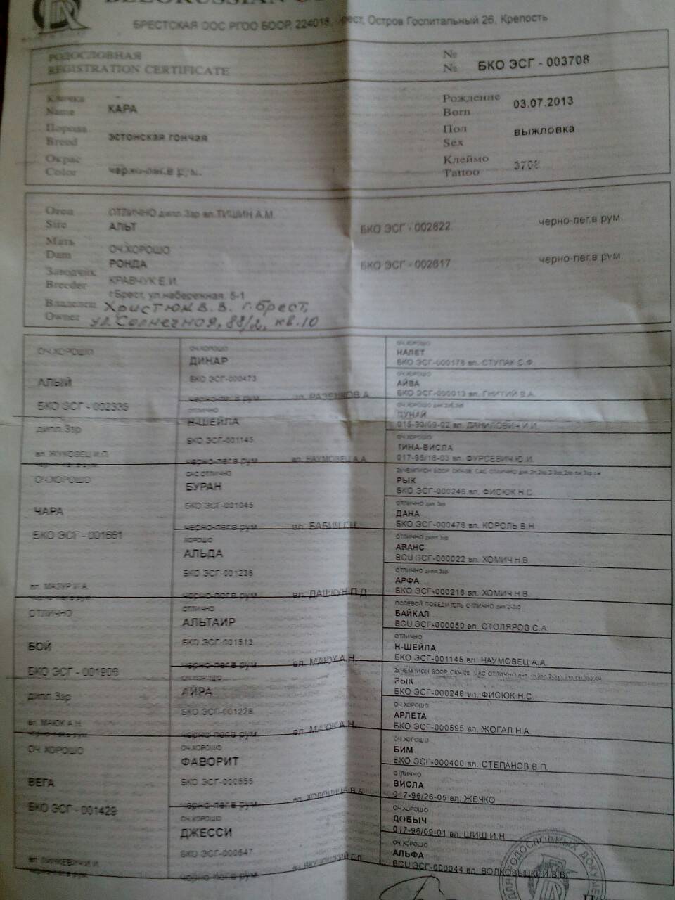 Есть дипломированный потомок БКО ЭСГ-004549 Гайна, вл. Харевич Д.А.