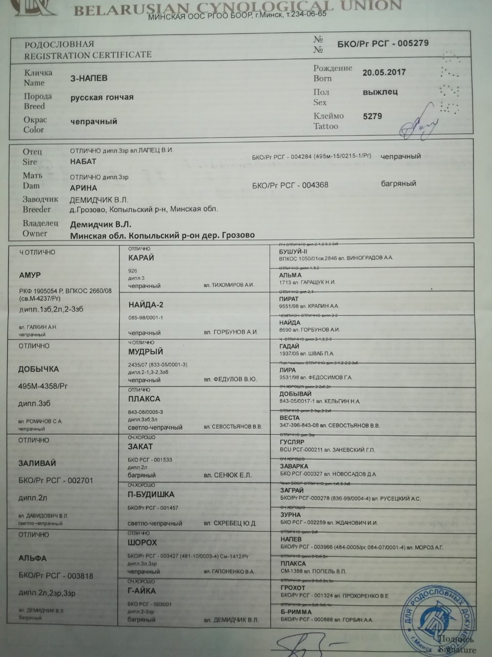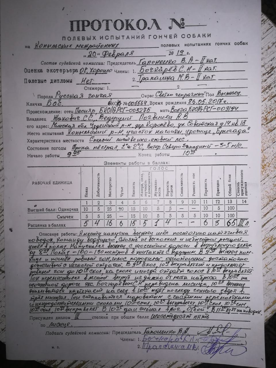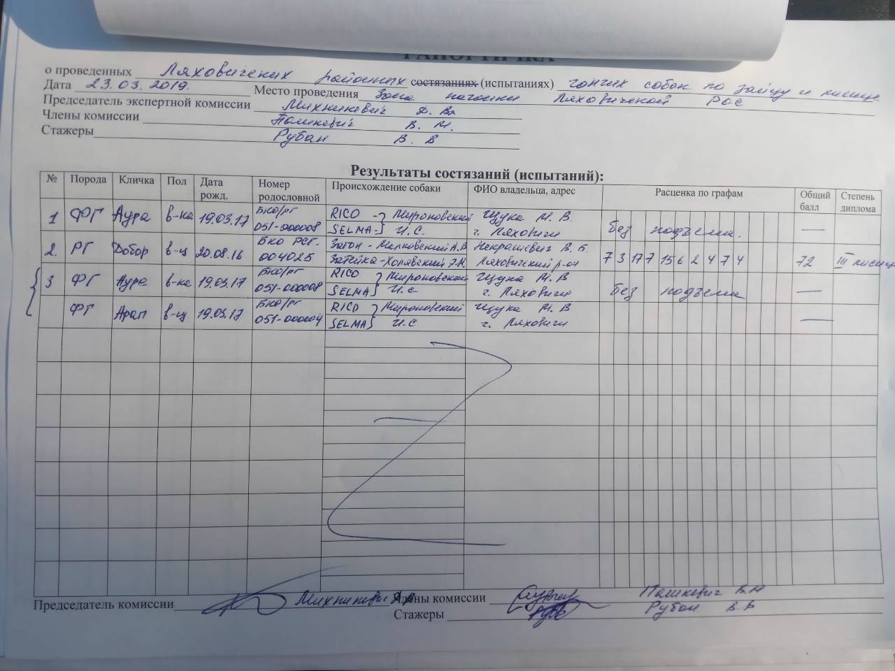 Вторая его собака(РГ) чуть не добрала до диплома.