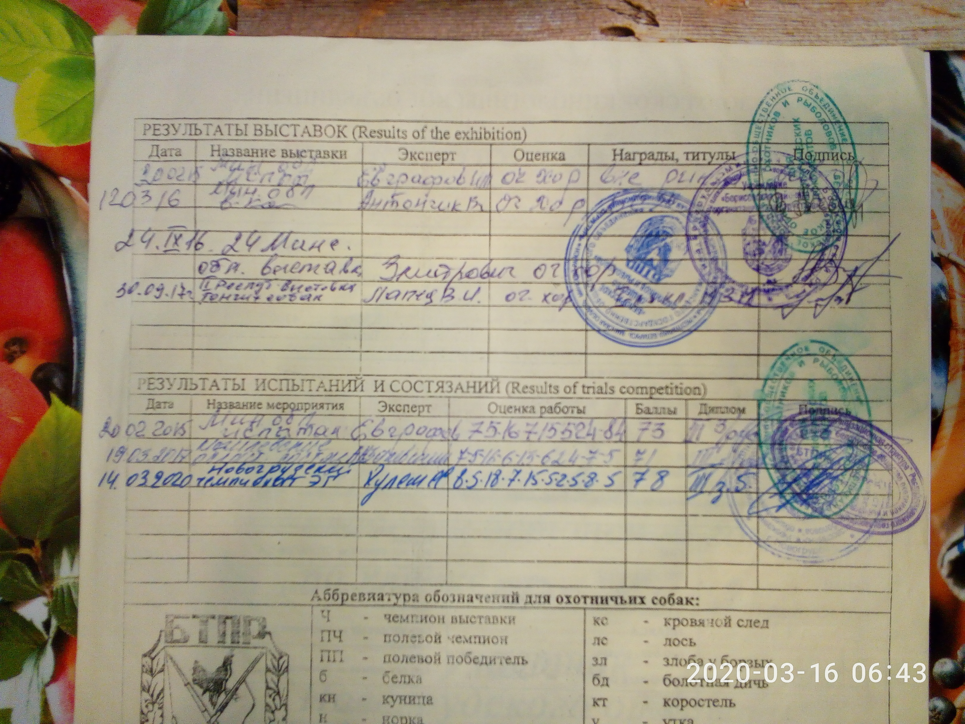 15.03.2017; 3 лиса ; 7-5-16-6-15-6-2-4-6-5=72- Баранов М.М.;Евграфов И.М.(в рапортичке ошибка - №родословной и кличка матери)