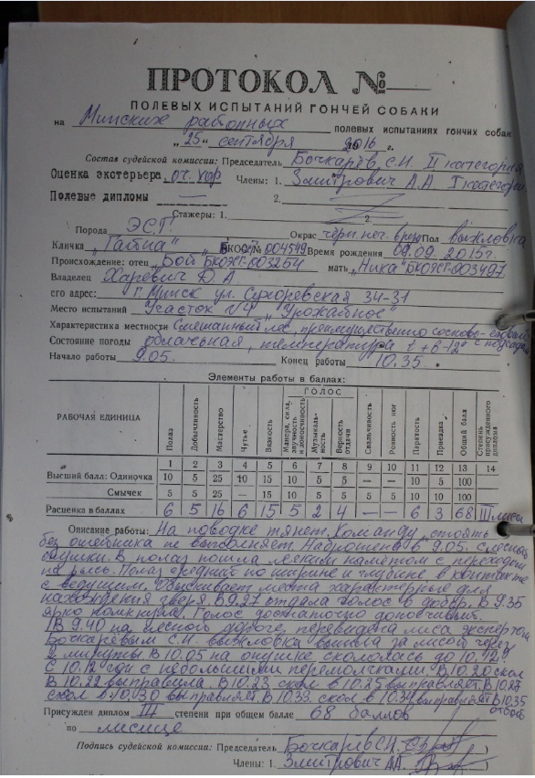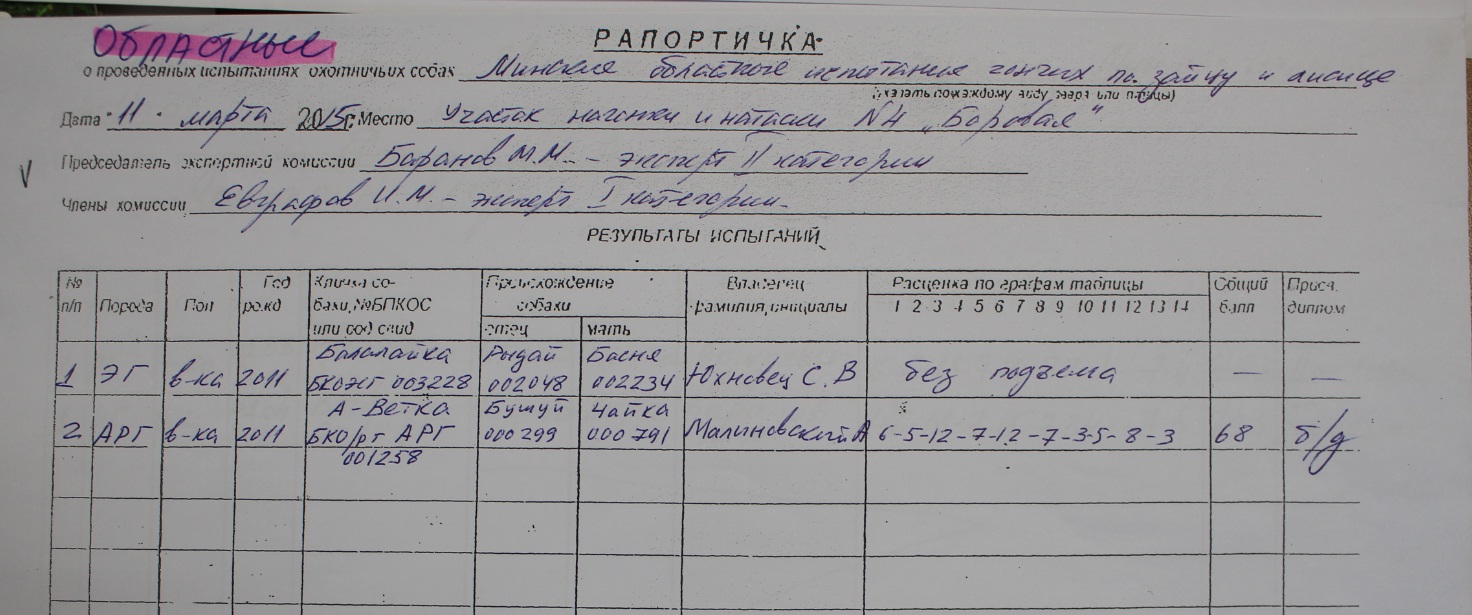 Re: Родословные дипломированных выжлецов ЭГ в РБ