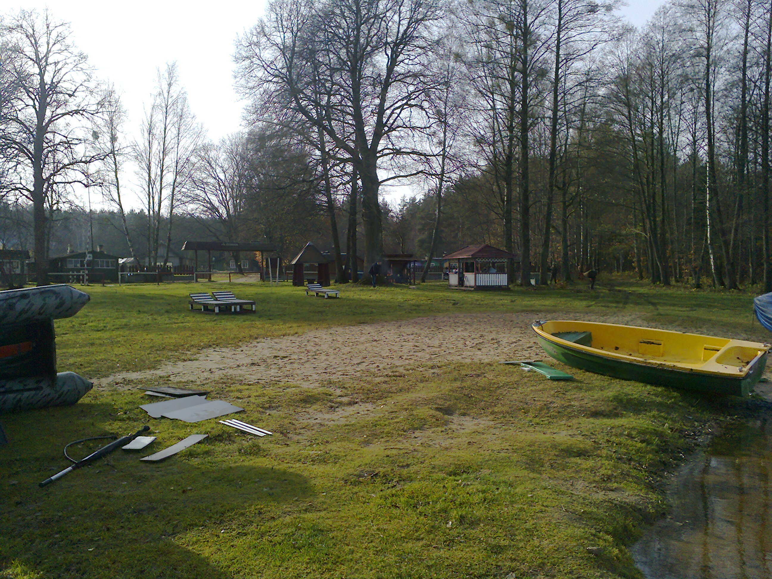 Договор аренды водоема арендатору не продлили и рыбалка там сейчас бесплатная, да только нечего там ловить в прямом и переносном смысле. На базе отдыха запустение: отдыхающих очень мало. В момент нашего приезда на рассвете вообще не было никого, но к середине дня подъехало несколько машин. Комплекс выставлен на продажу.