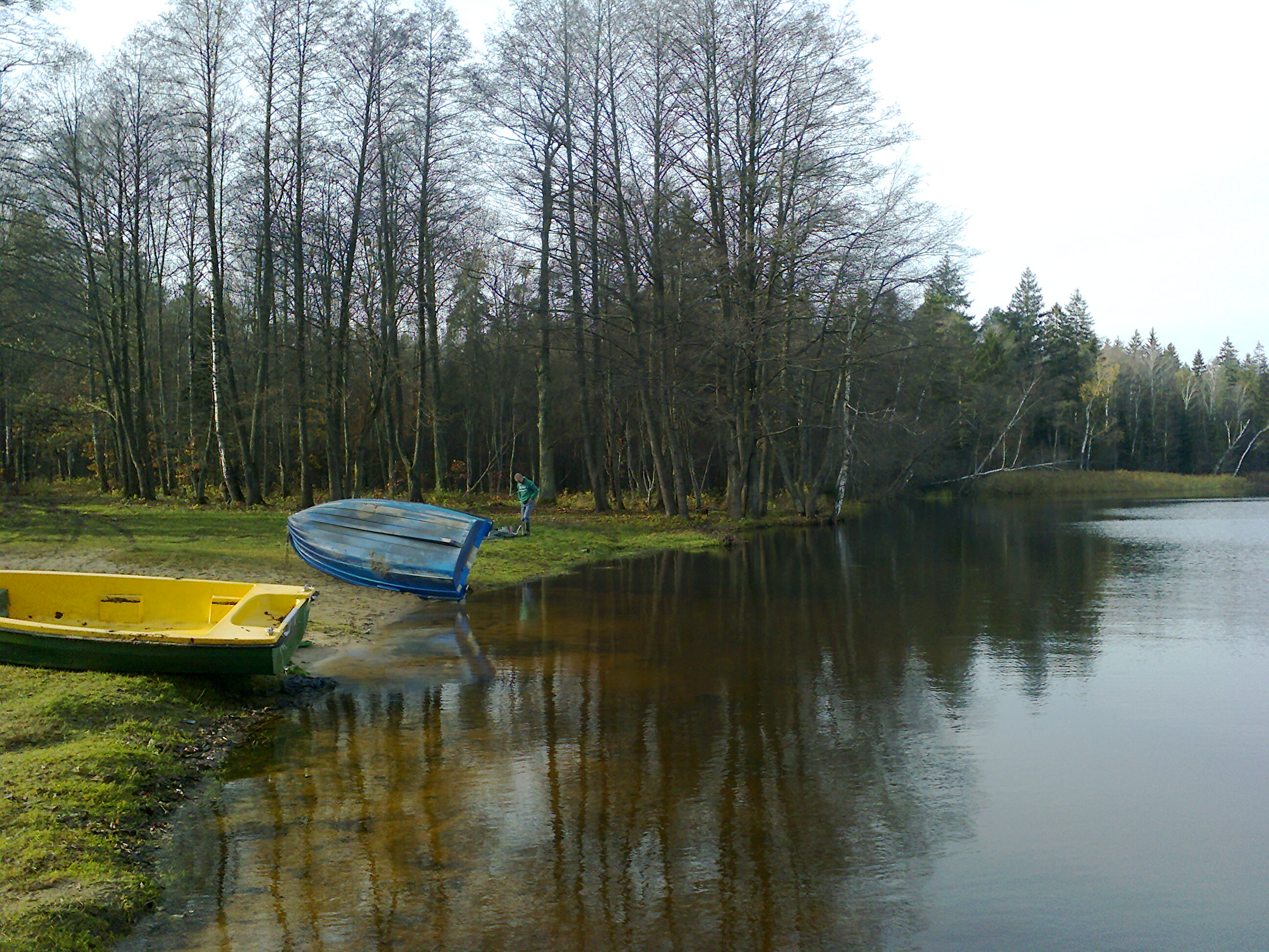 Сейчас озеро пустое, хищника практически нет. В первые выходные ноября мы тщательно обловили водоем спиннингами с разнообразными приманками и ничего не поймали, причем, наш эхолот всего лишь два раза за несколько часов «пискнул», обнаружив единичные экземпляры некрупной рыбы, хотя мы несколько раз обошли все озеро на лодке. Кстати, эхолот однажды показал глубину двадцать шесть метров, так что, про большую глубину – это не сказки. Удивляет, откуда взялась такая глубокая яма среди бескрайней заболоченной равнины Налибокской пущи?