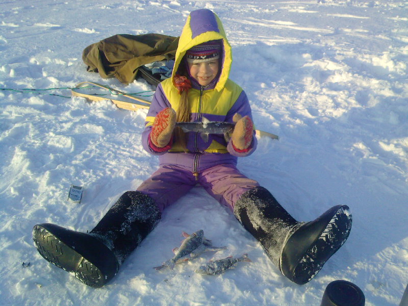 А это моя дочурка (9,9 лет), всего второй раз на зимней рыбалке.