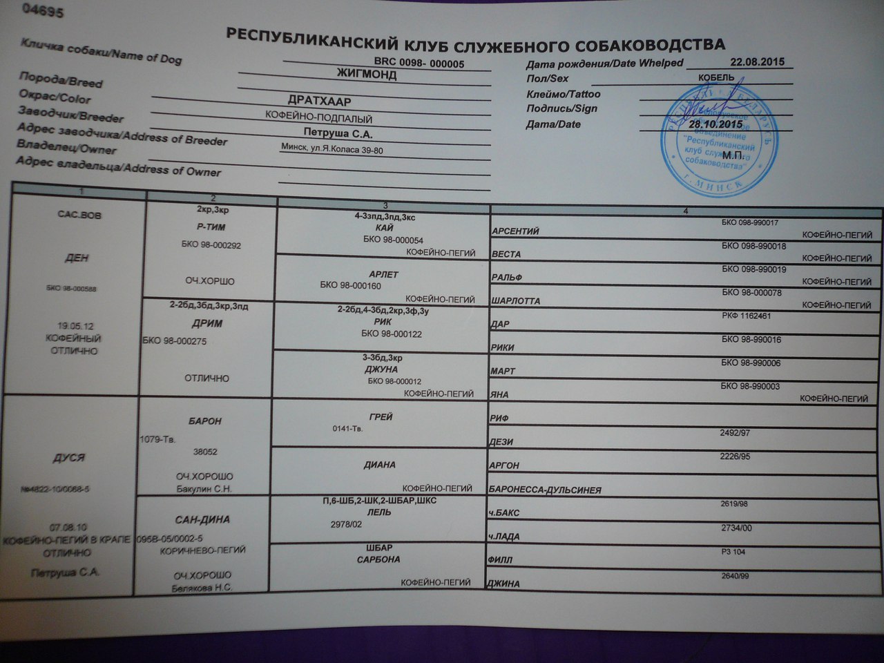 Родословная: BRC 0098-000004