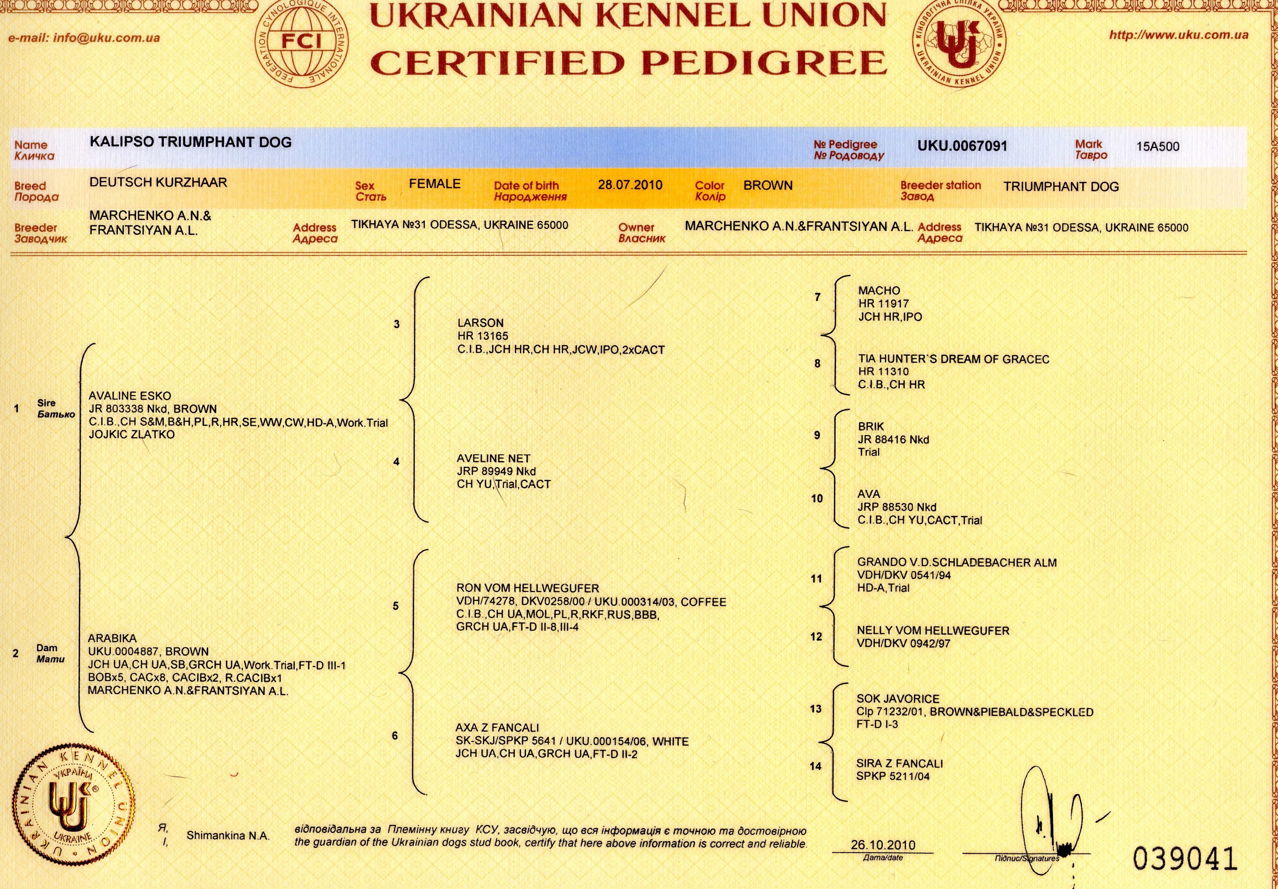9. Мать: KALIPSO Triumphant Dog - Интерчемпион!