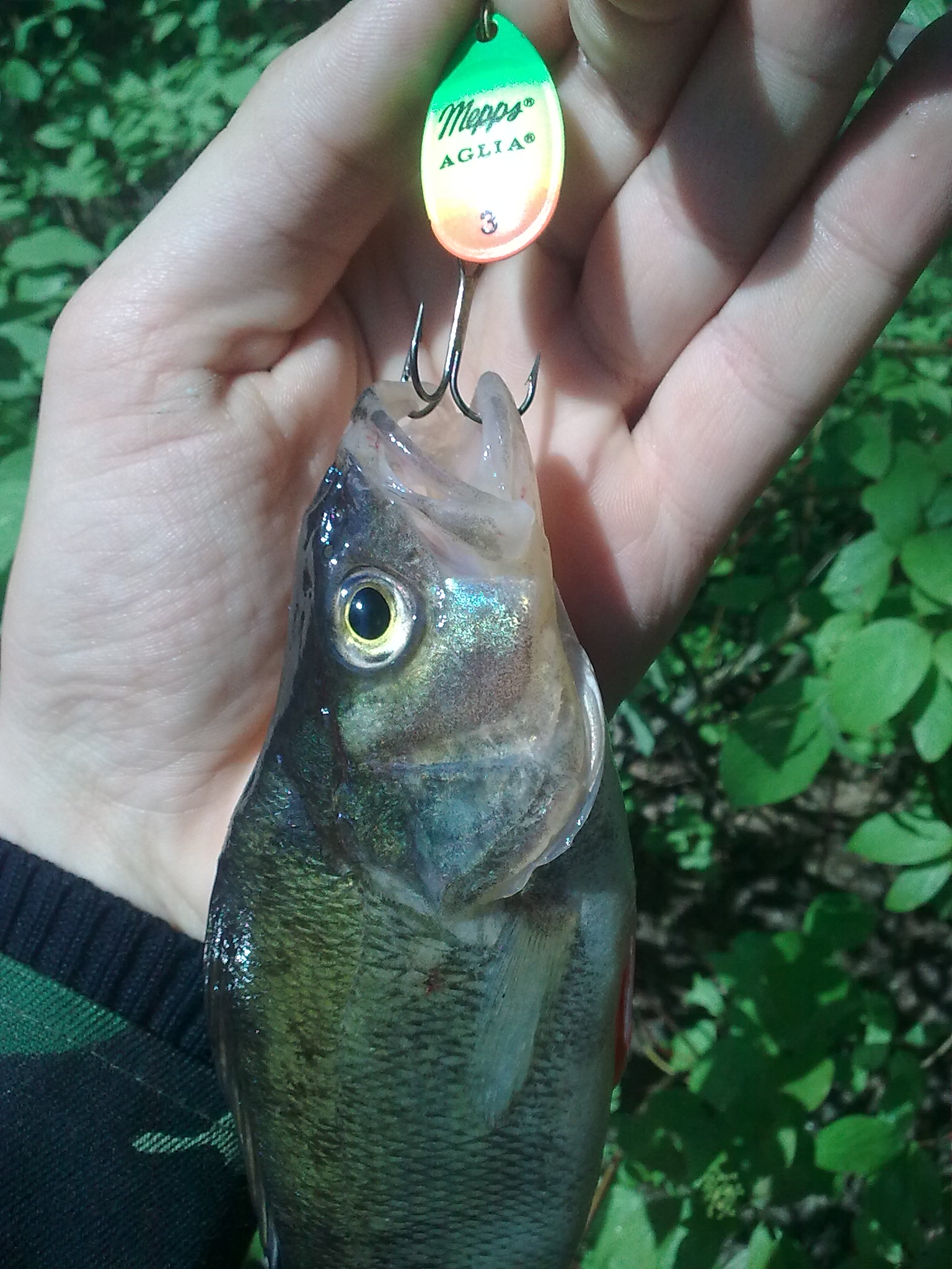 Был сегодня на Крынице и ММ (с собой только спин UL), выехал где-то в 6, погода была пасмурная, чуть позже сел туман, приехал на крыницу, там где слив и водопады. фидерасты сидят очень плотно, кидать фактически негде, все любимые места заняты. Не стал разматываться - поехал на "трубу", там ситуация еще более злая, в промежутках между кустами сидят с фидерами, лес затоплен - дальше не пройти,глубоко.... покидал через кусты, оставил меппс аглию в коряге, серебро №1 рыбам на веселье :)
